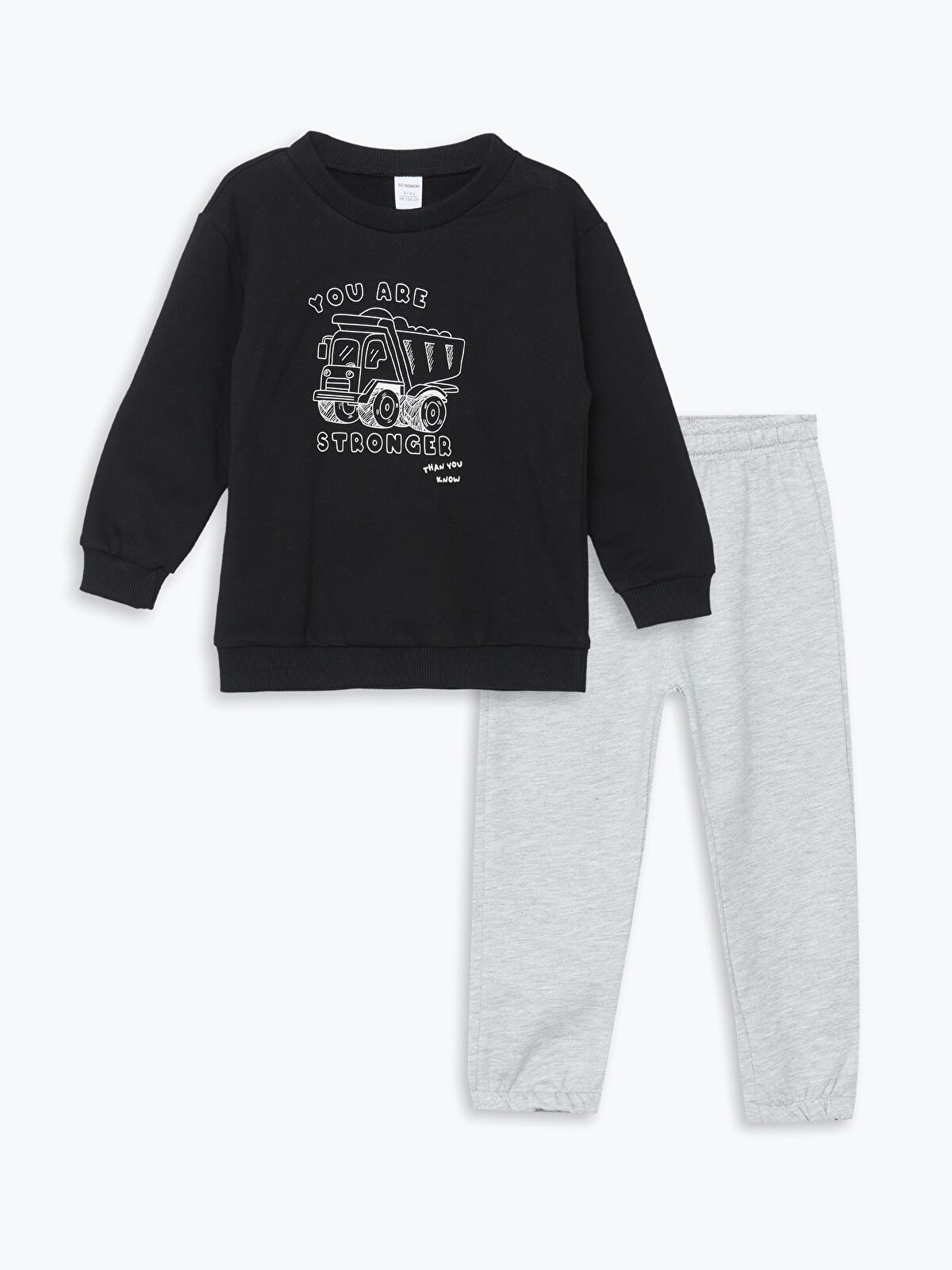 Dress your little one in comfort and style with this adorable LCW Kids black sweatshirt and pants set. Made from 100% cotton, this two-piece outfit features a cozy crew neck sweatshirt adorned with playful prints and matching pants with an elastic waistband for a perfect fit. Ideal for active boys, this set is perfect for playdates, casual outings, or lounging at home. Keep your child looking stylish and feeling great all day long!