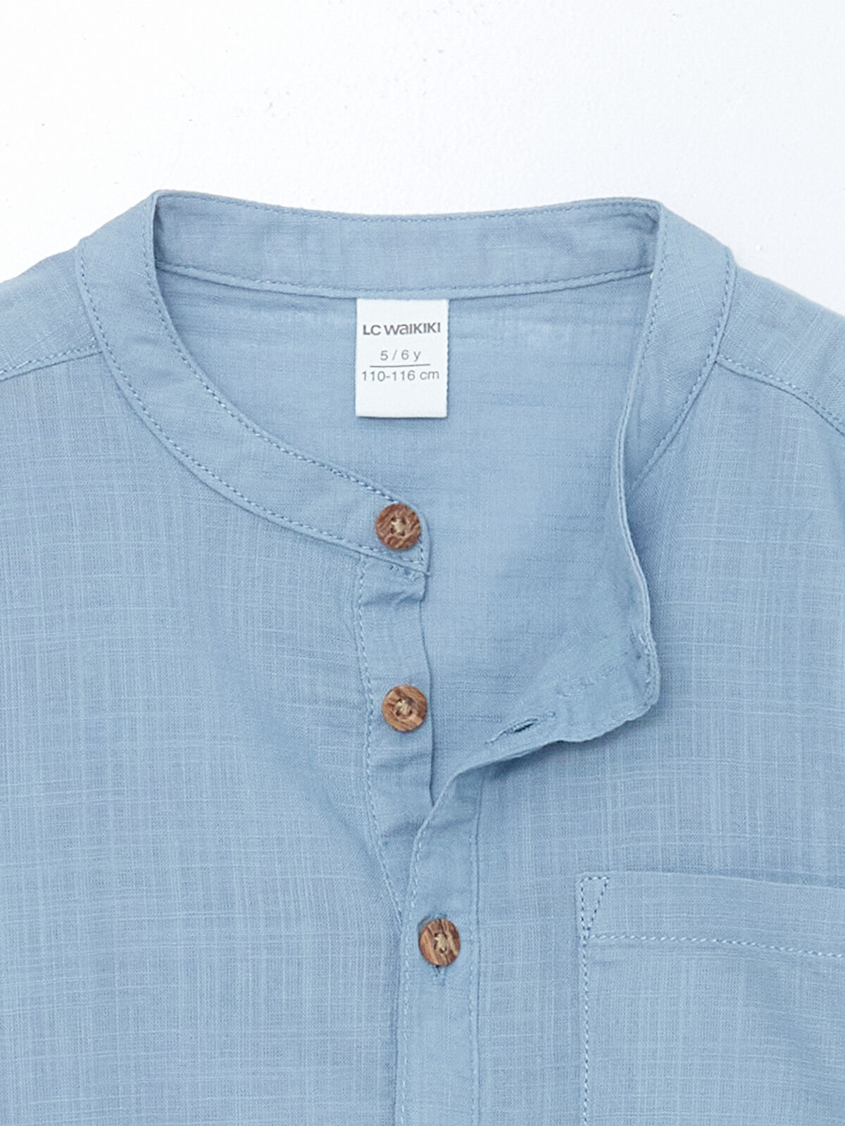 LCW Kids Blue Mandarin Collar Poplin Shirt for Boys