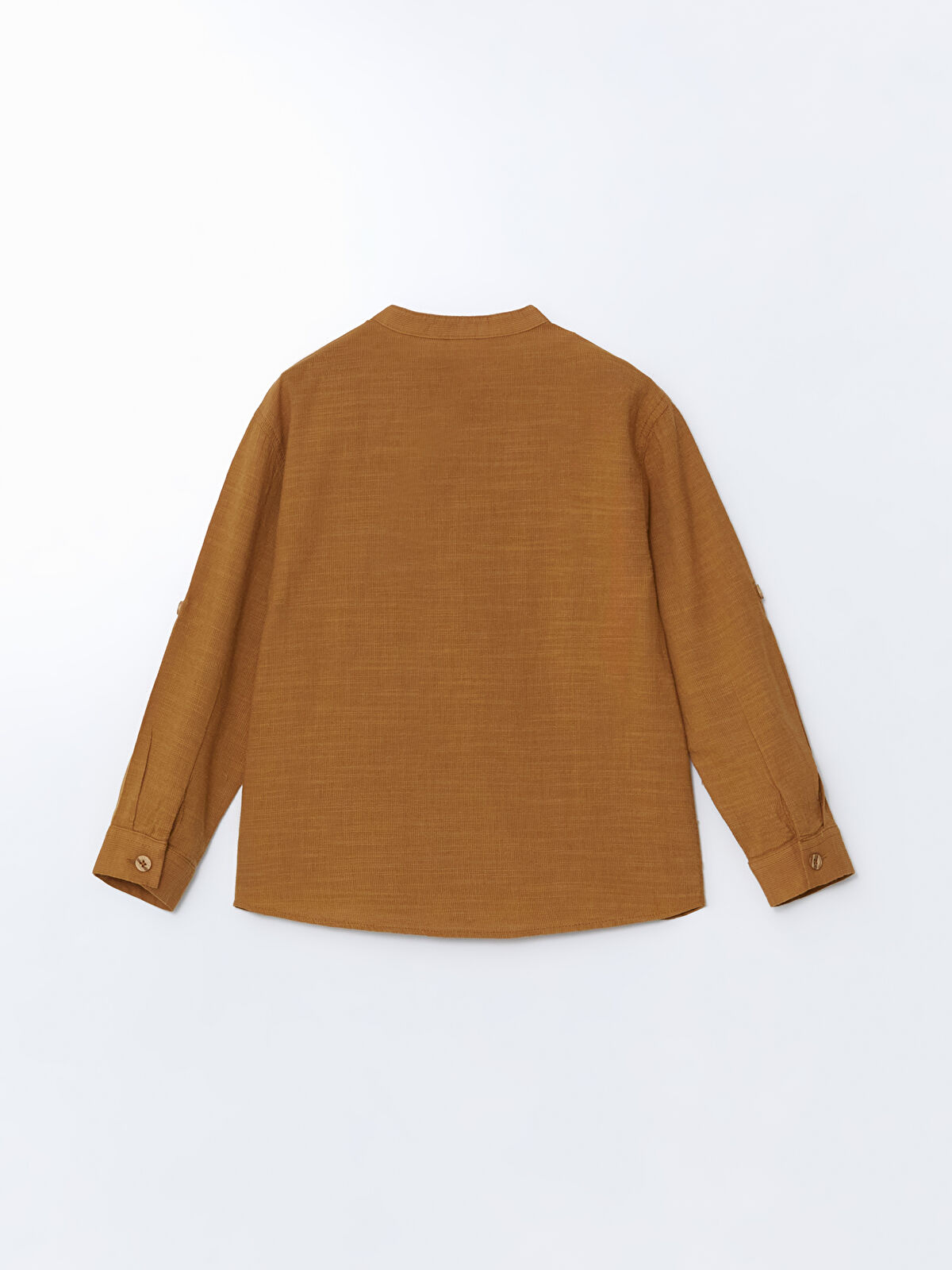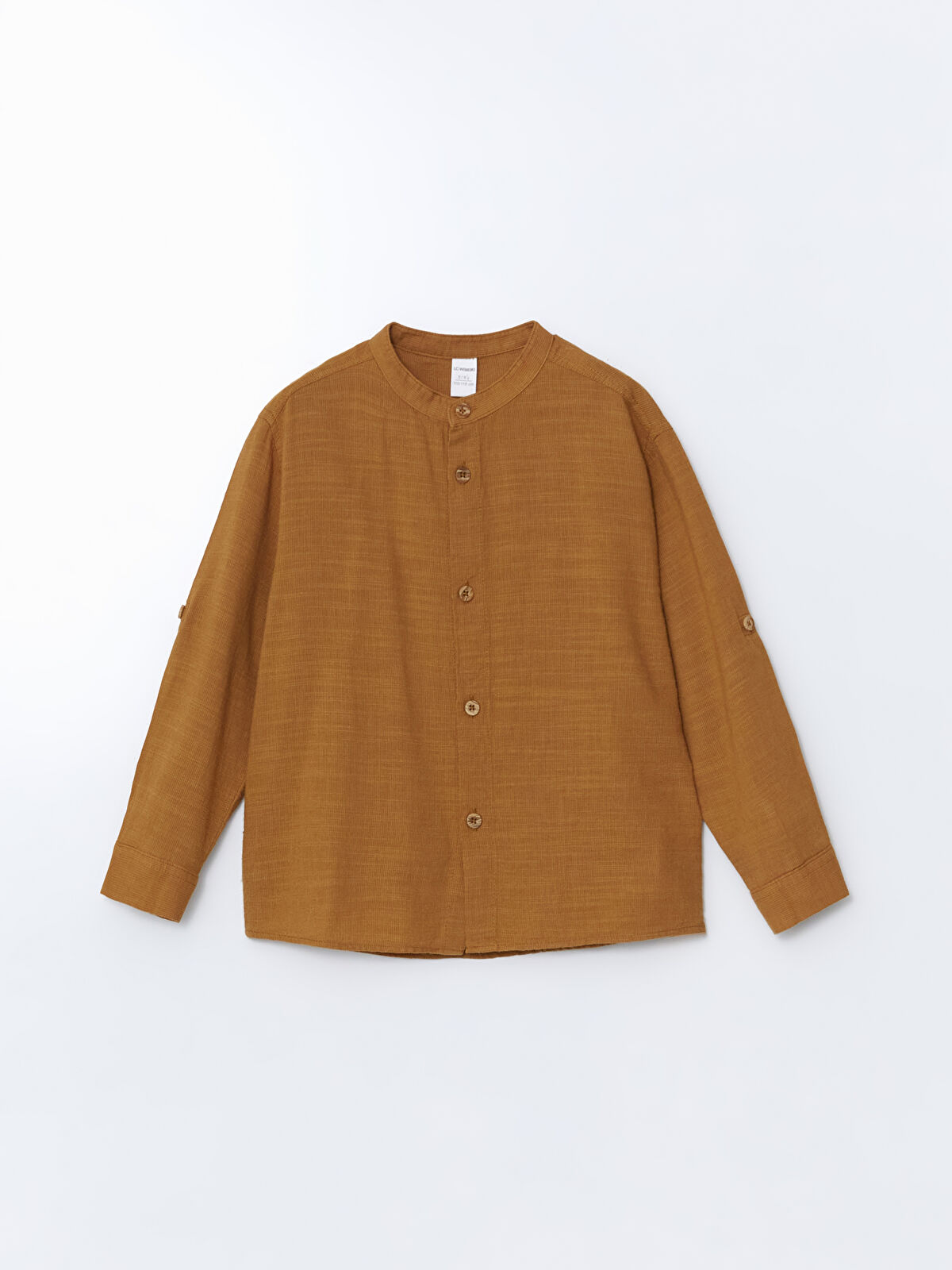 LCW Kids Brown Mandarin Collar Basic Boys' Shirt