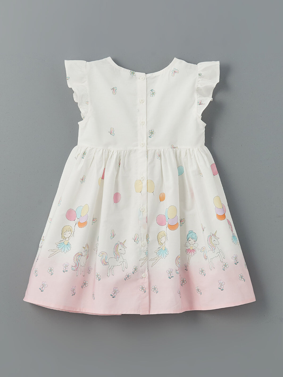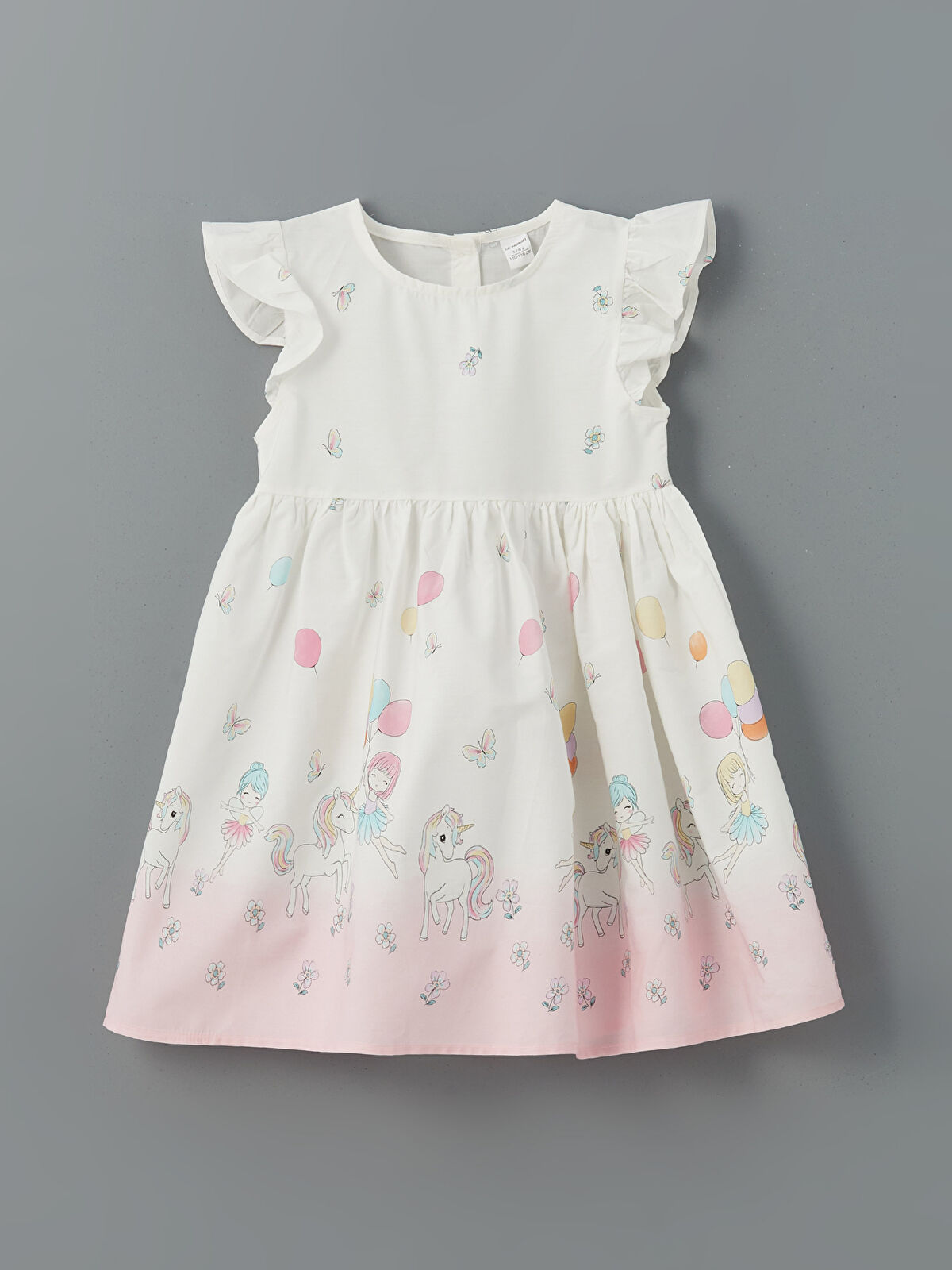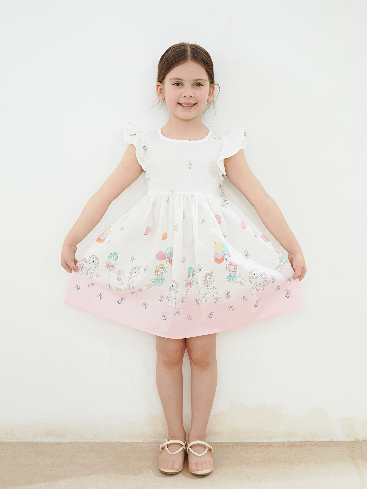 LCW Kids Cream Bicycle Neck Poplin Dress for Girls