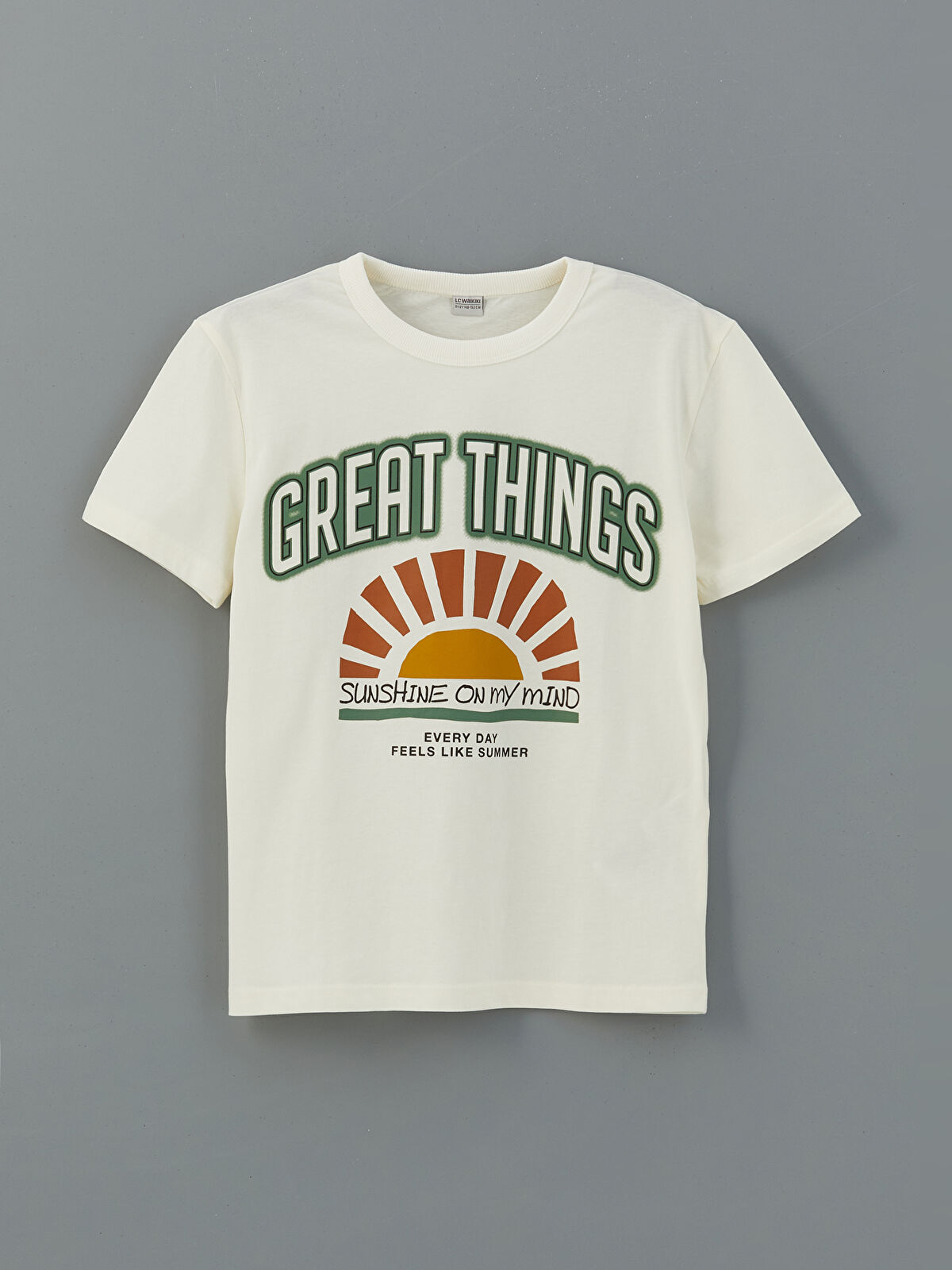 LCW Kids Cream Crew Neck T-Shirt and Shorts Set