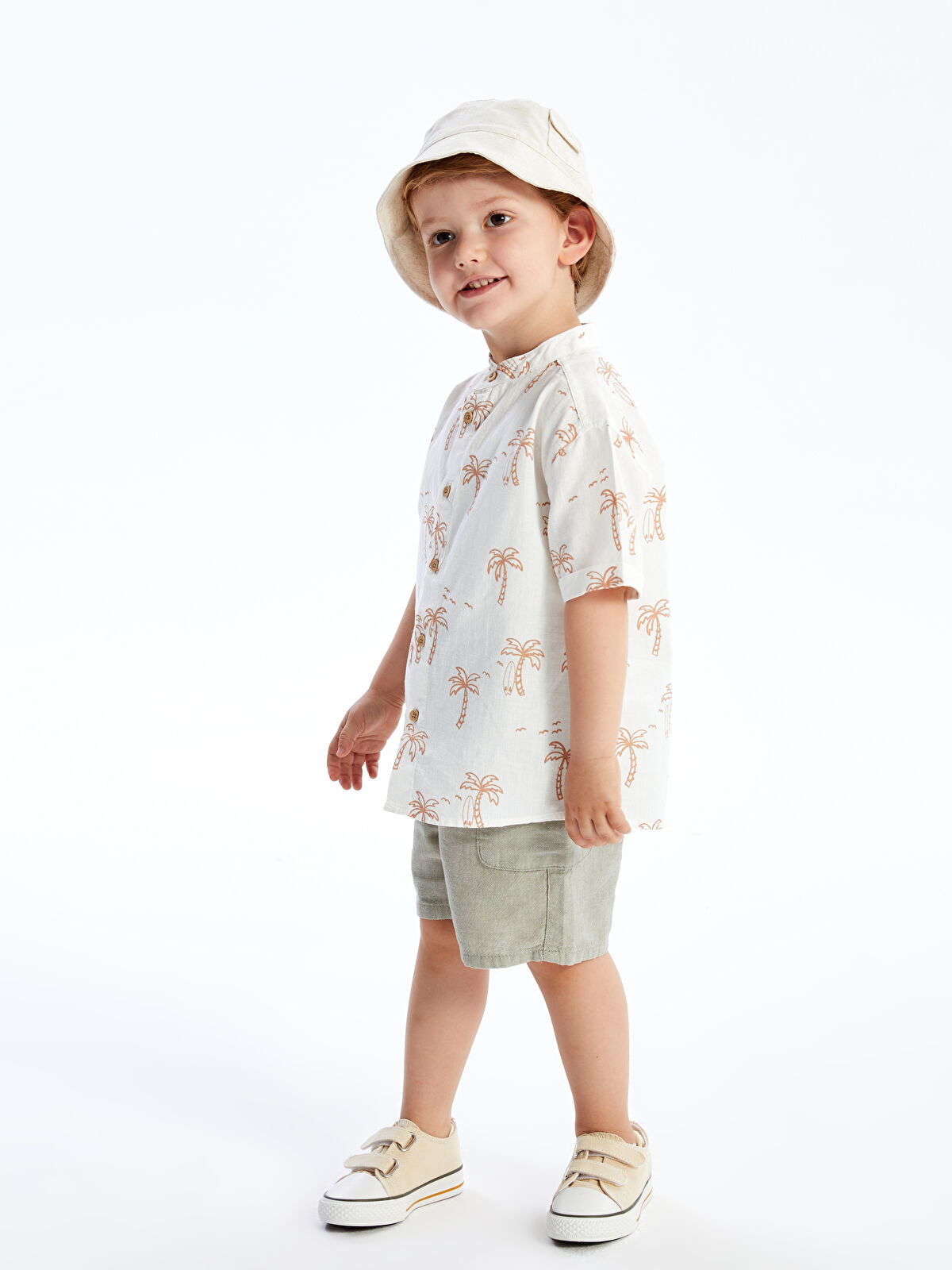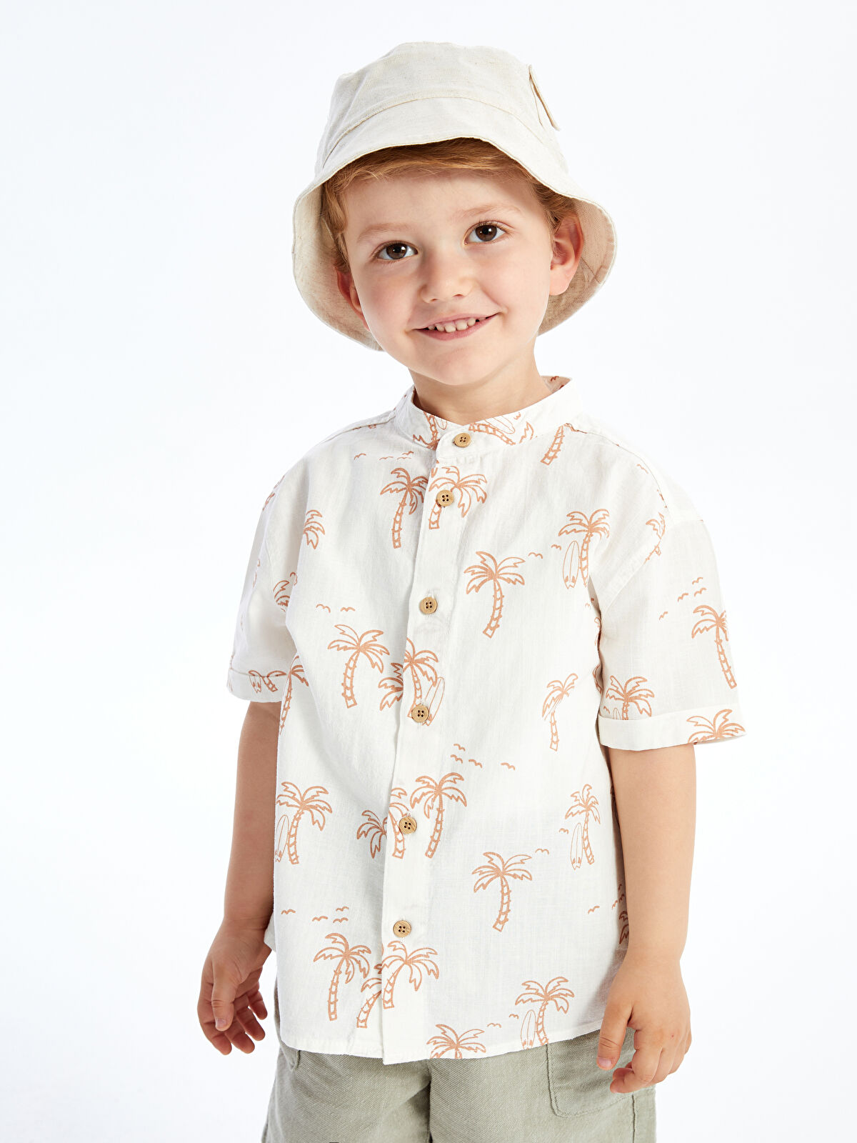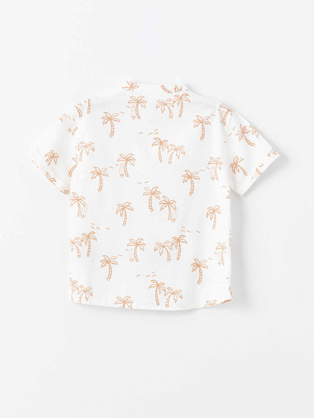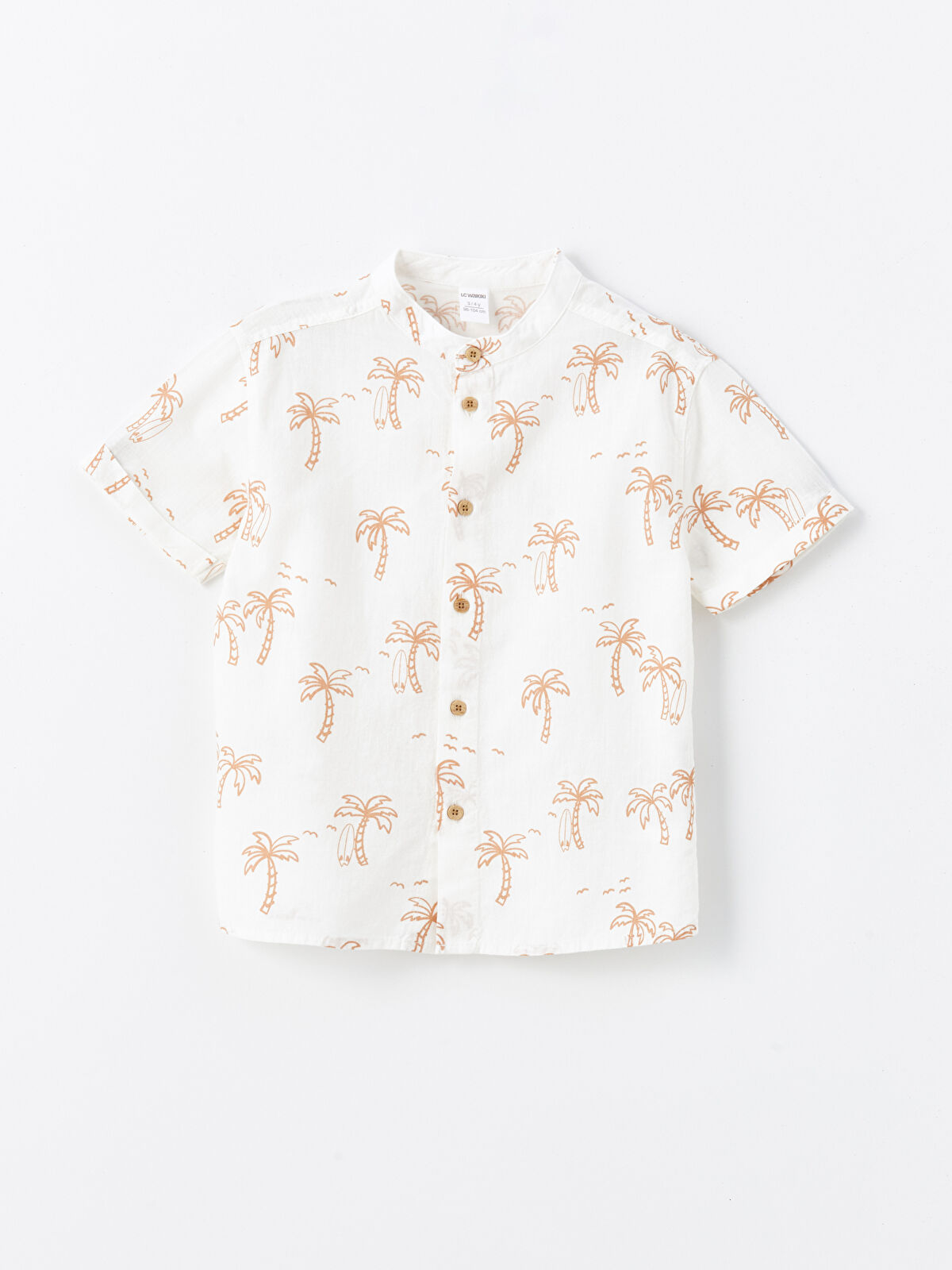 LCW Kids Cream Mandarin Collar Short Sleeve Printed Baby Boy Shirt