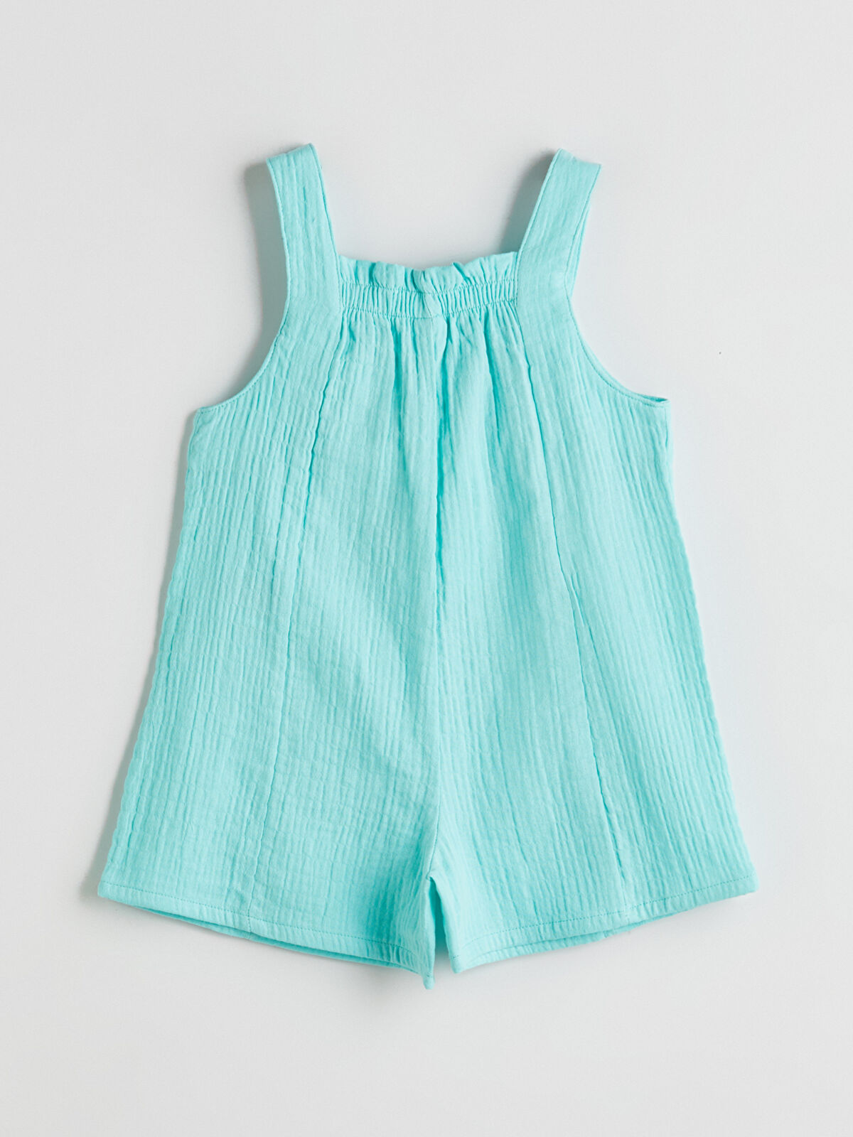 LCW Kids Turquoise Sleeveless Square Neck Girls' Overall