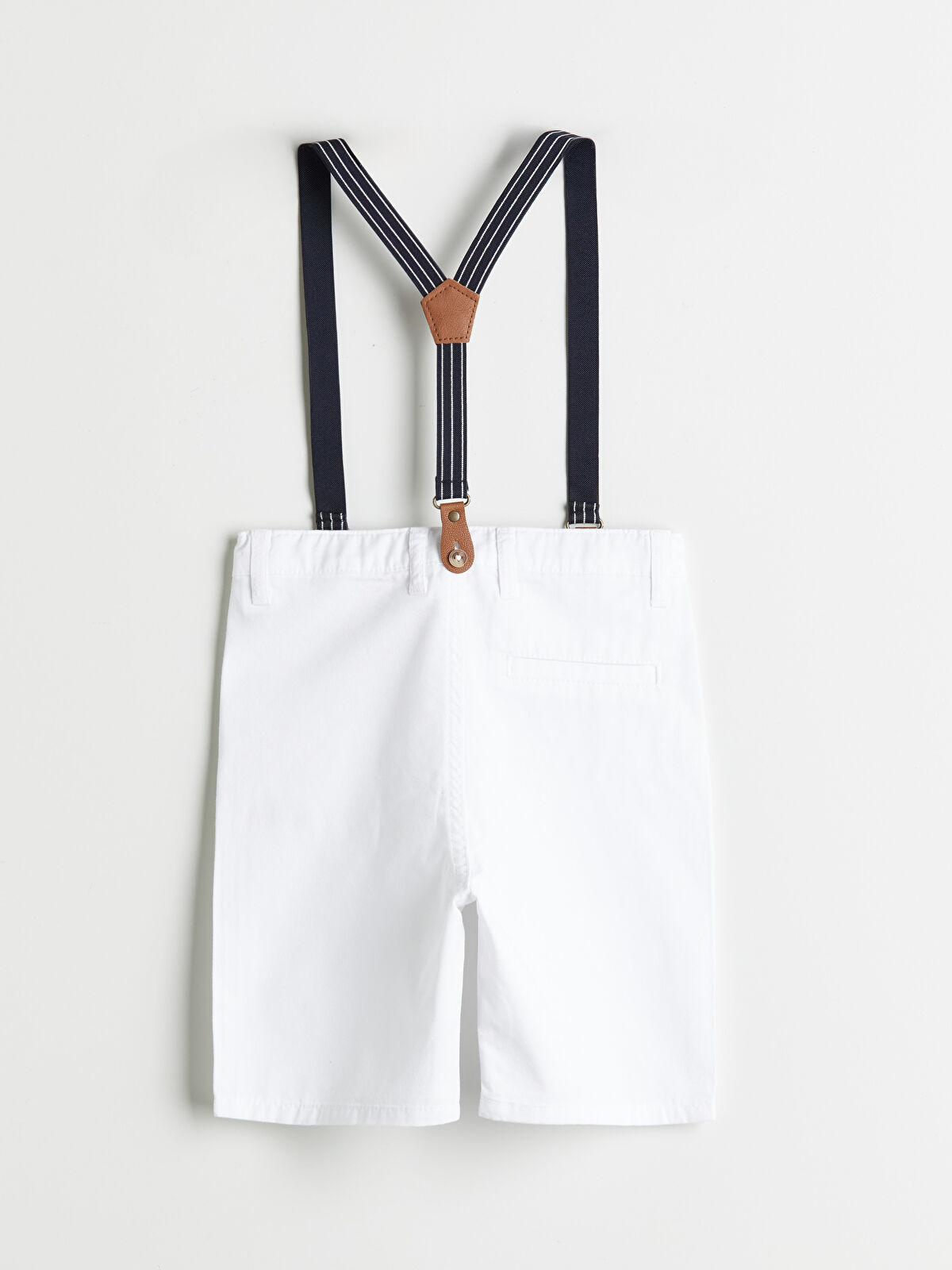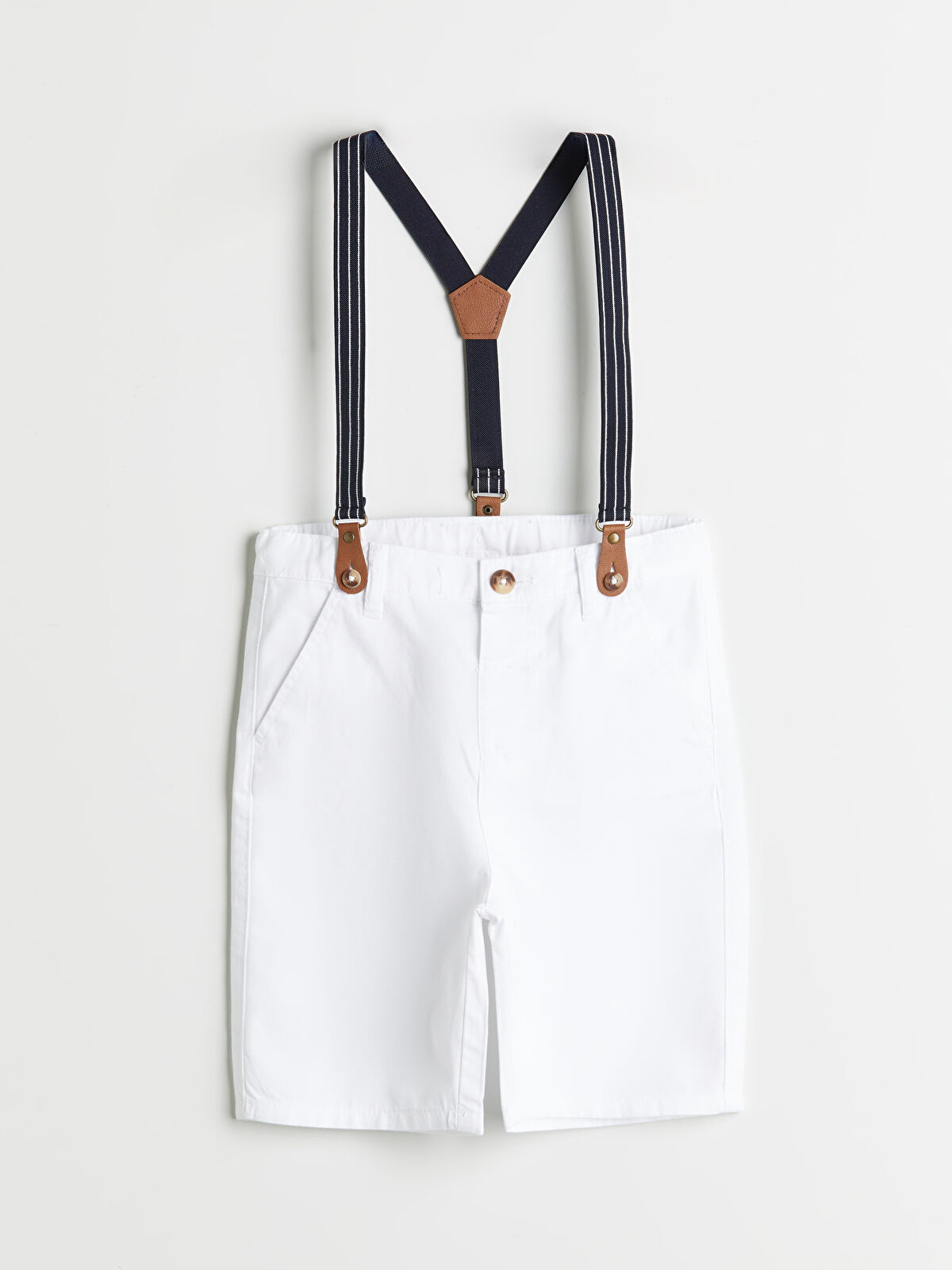Introducing the perfect summer staple for your little boy, these LCW Kids White Basic Suspender Shorts are crafted from 100% cotton for ultimate comfort and breathability. Featuring removable and adjustable striped suspenders, these shorts offer a stylish yet practical solution for any adventure. The elastic waistband ensures a snug fit, making playtime effortless. Ideal for casual outings or fun-filled days at the park, these versatile shorts will keep your child looking adorable and feeling great all day long.