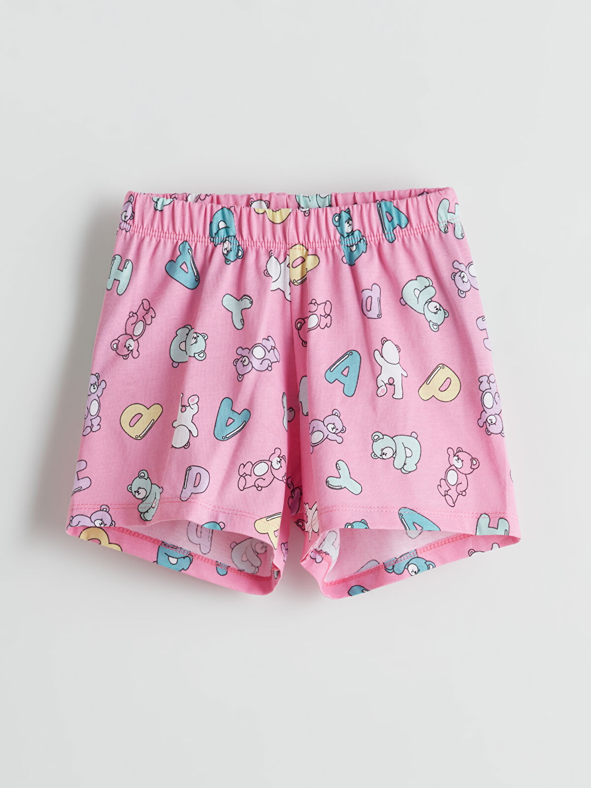 طقم بيجامة للبنات مطبوع باللون الأصفر مع شورت من LCW Kids