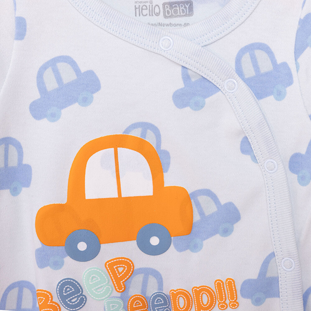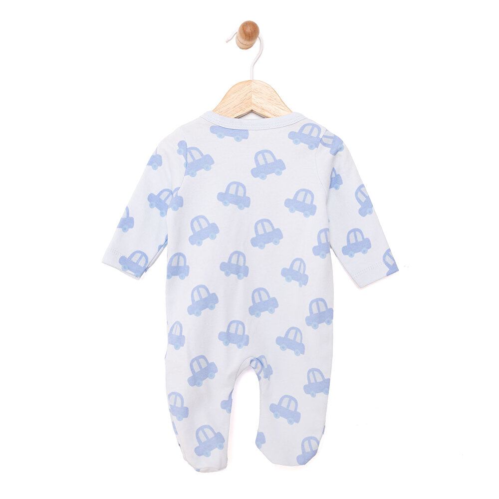Newborn Baby Boy Footed Romper Interlock Car Print Blue