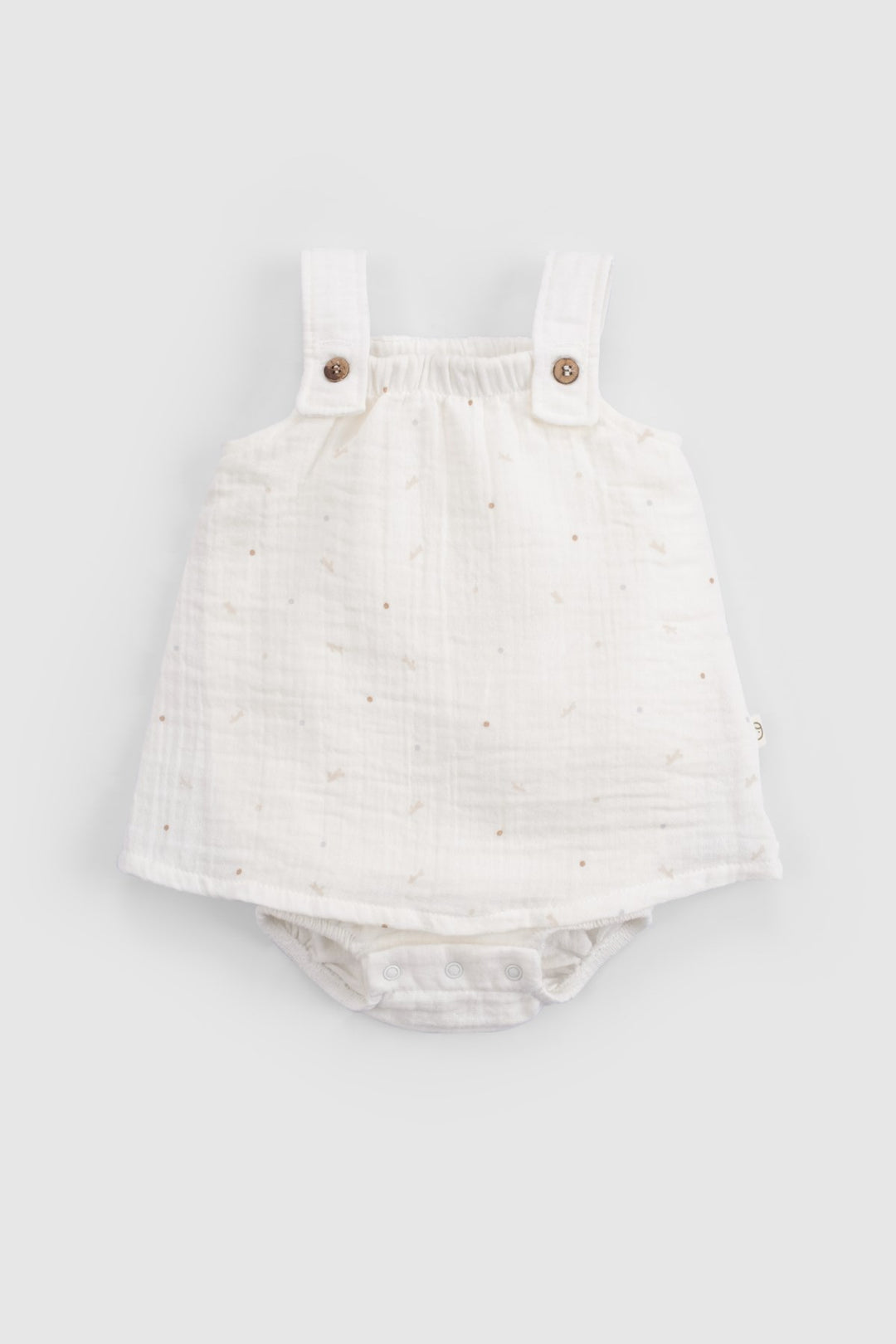 Organic Cotton Muslin Ecru Baby Dress Bodysuit