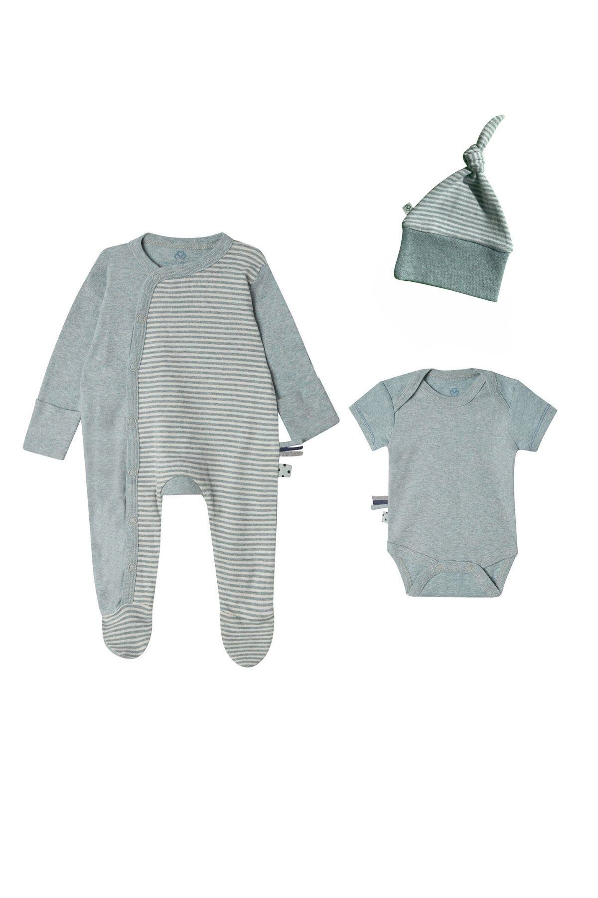 OrganicEra Organic Newborn Set - 3 Pieces, Aqua Melange