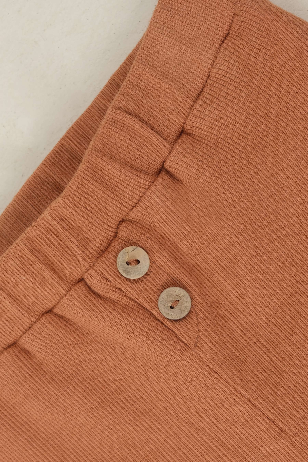Crafted from 100% cotton, these adorable ribbed long leggings in a soft peach hue are a must-have for your little one’s wardrobe. Featuring a stylish button detail at the front, they offer both comfort and a touch of charm, making them perfect for everyday wear or special occasions. Pair them with a cute top for a complete look that your child will love!