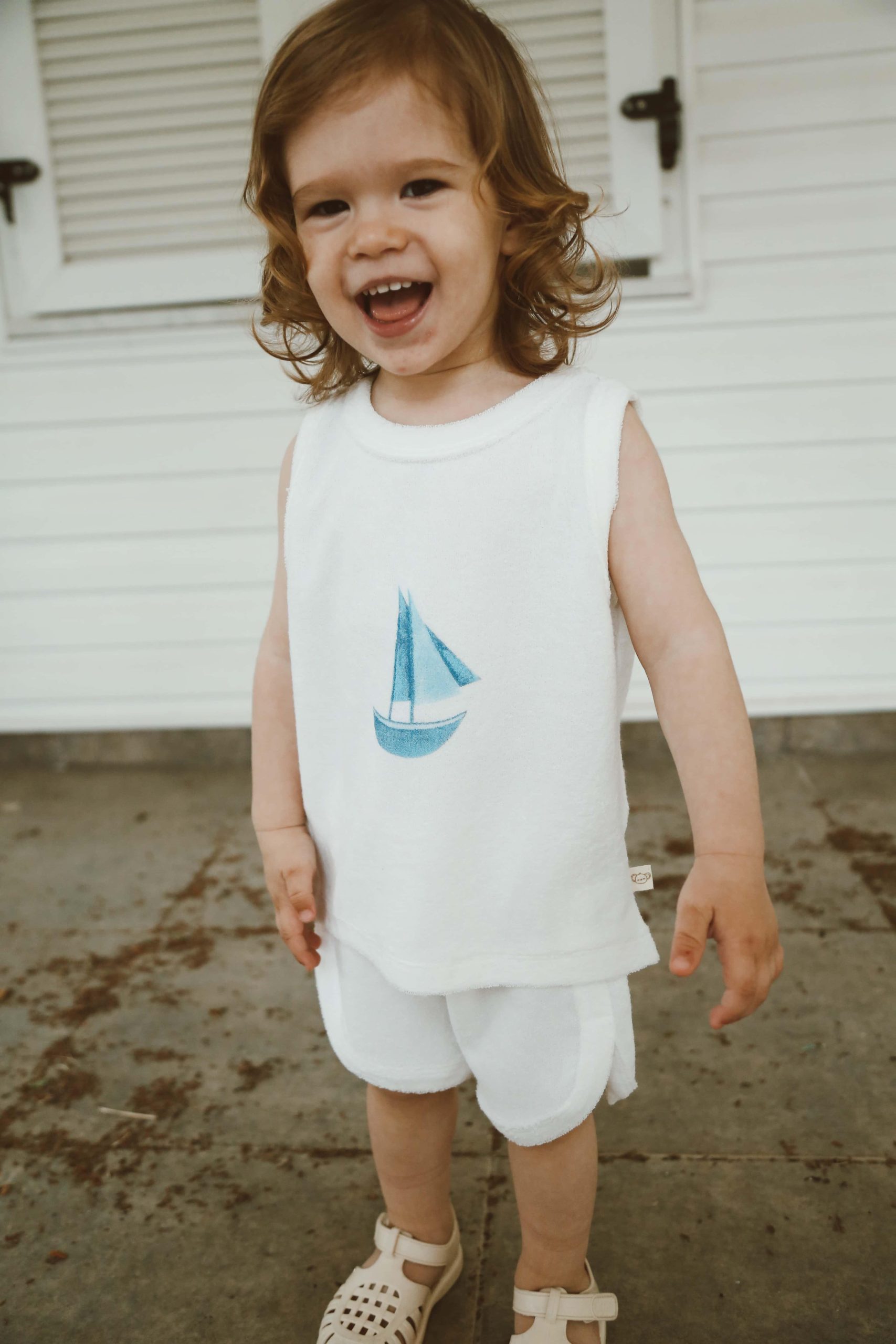 This charming sailboat print towel shorts set is designed to keep your little one comfortable and stylish all summer long. Crafted from lightweight and breathable fabric, it ensures freedom of movement for active toddlers. The soft, 100% cotton material is gentle on delicate skin, while the sleeveless design helps keep them cool. Perfect for playdates or beach outings, this outfit combines practicality with a trendy look, making it a must-have addition to your child’s wardrobe.