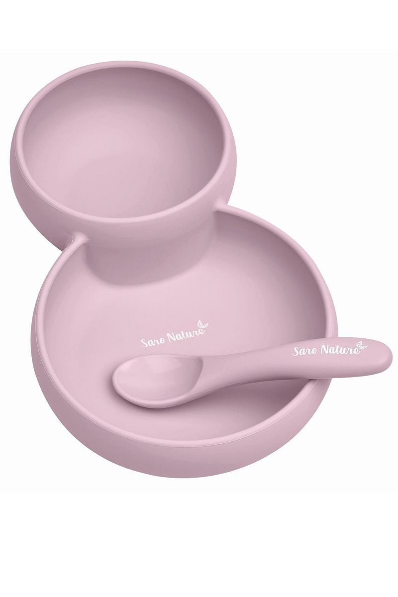 طقم أطباق ووعاء وملعقة من السيليكون من سارو باللون الوردي