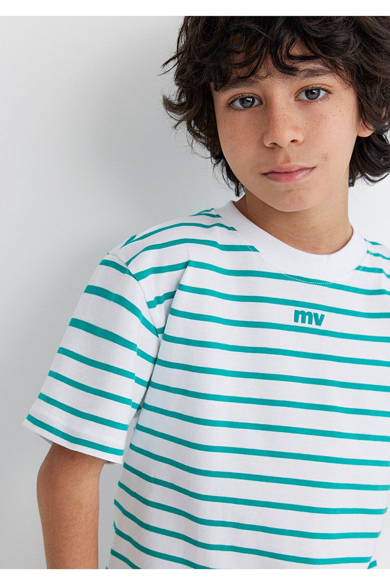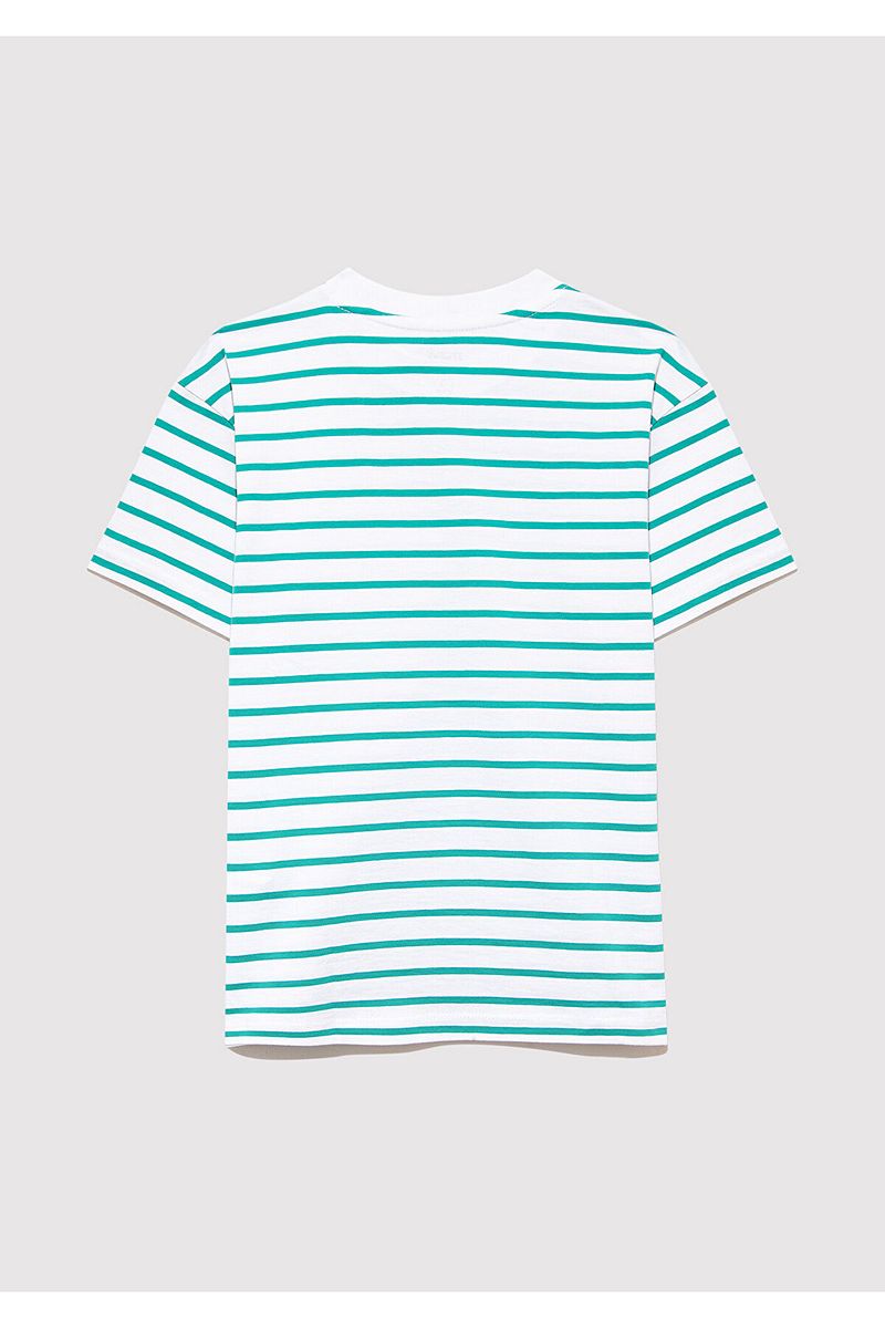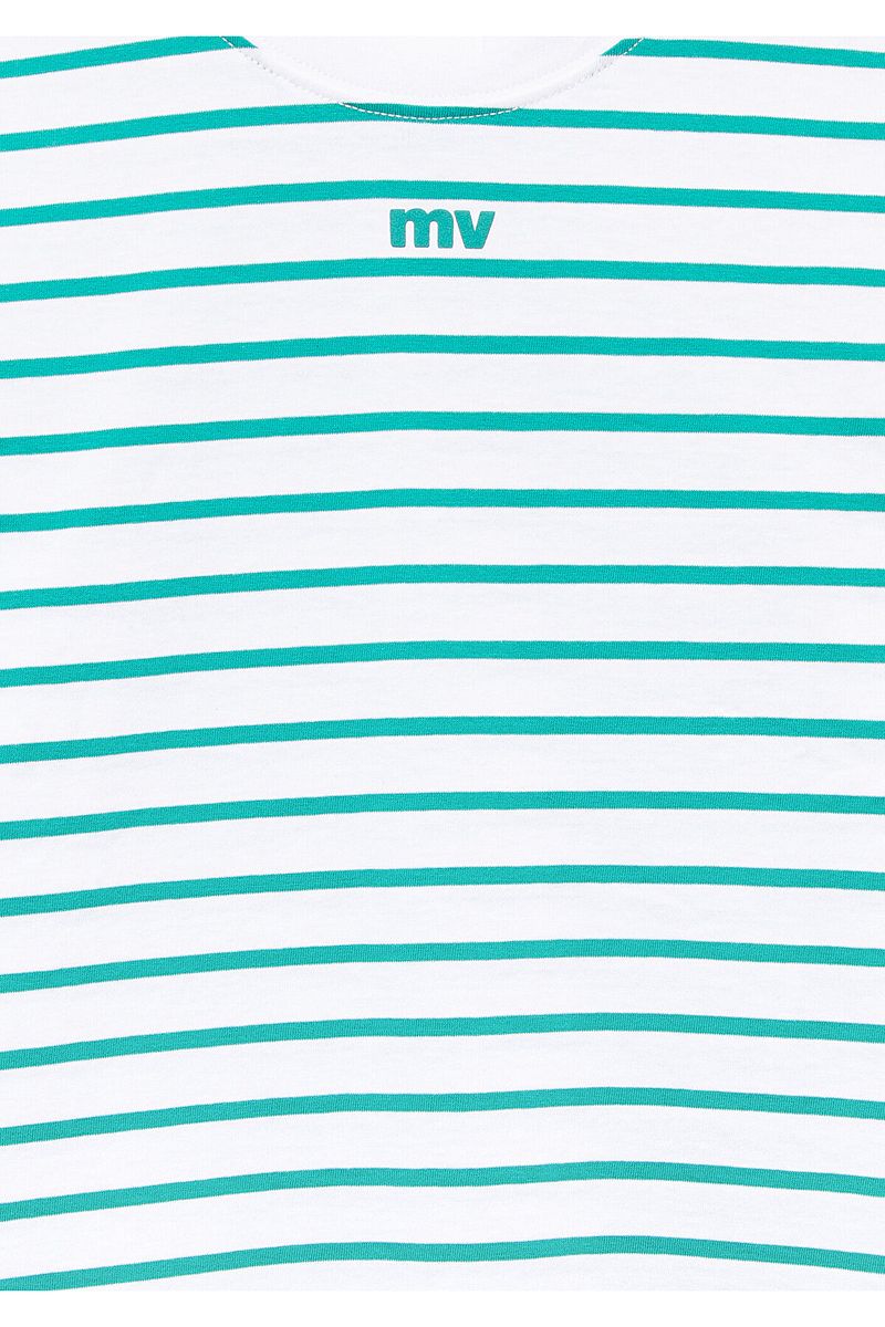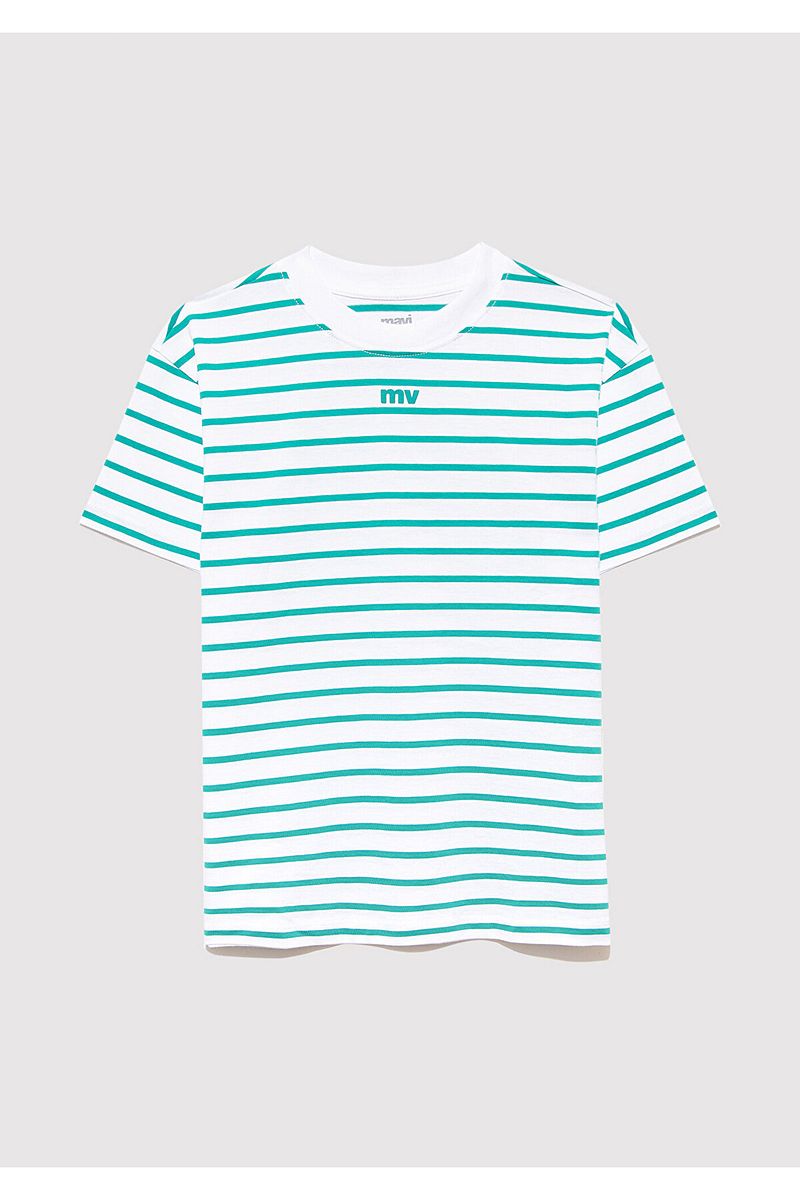 Striped Green Loose Fit T-Shirt with Mavi MV Print