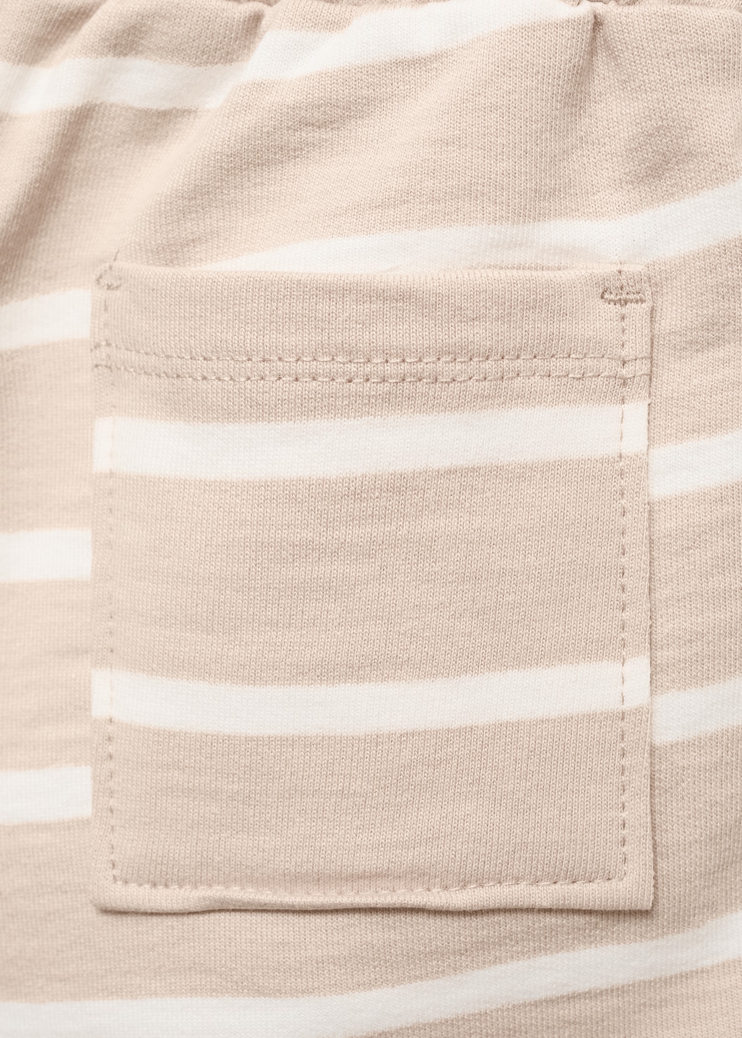 Made from 100% cotton, these striped Bermuda shorts are perfect for active kids who love to play in comfort and style. The short design features a classic striped pattern and a sleek look, with two front pockets for storing treasures found during adventures. The back includes a patch pocket for added functionality, while the lace-up elastic waistband ensures a snug fit for all-day wear. Ideal for sunny days at the park or family outings, these shorts are a must-have addition to your child’s wardrobe.