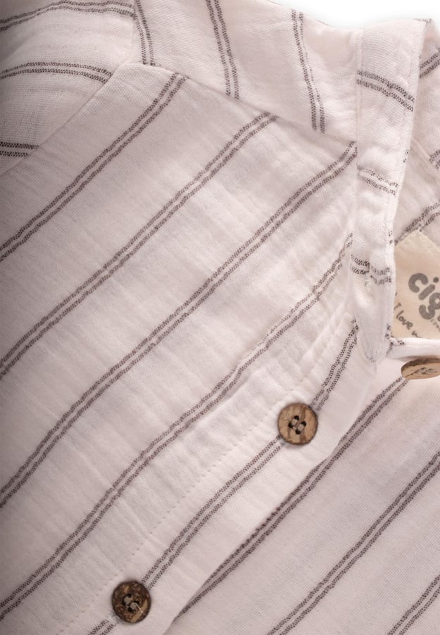 Crafted from 100% GOTS certified organic cotton, this muslin shirt offers a soft, breathable texture perfect for active little ones. Its stylish black stripes add a touch of charm, making it an ideal choice for both playdates and family outings. Easy to care for, this shirt can be machine washed on a gentle cycle, ensuring your child stays comfortable and fashionable all day long.