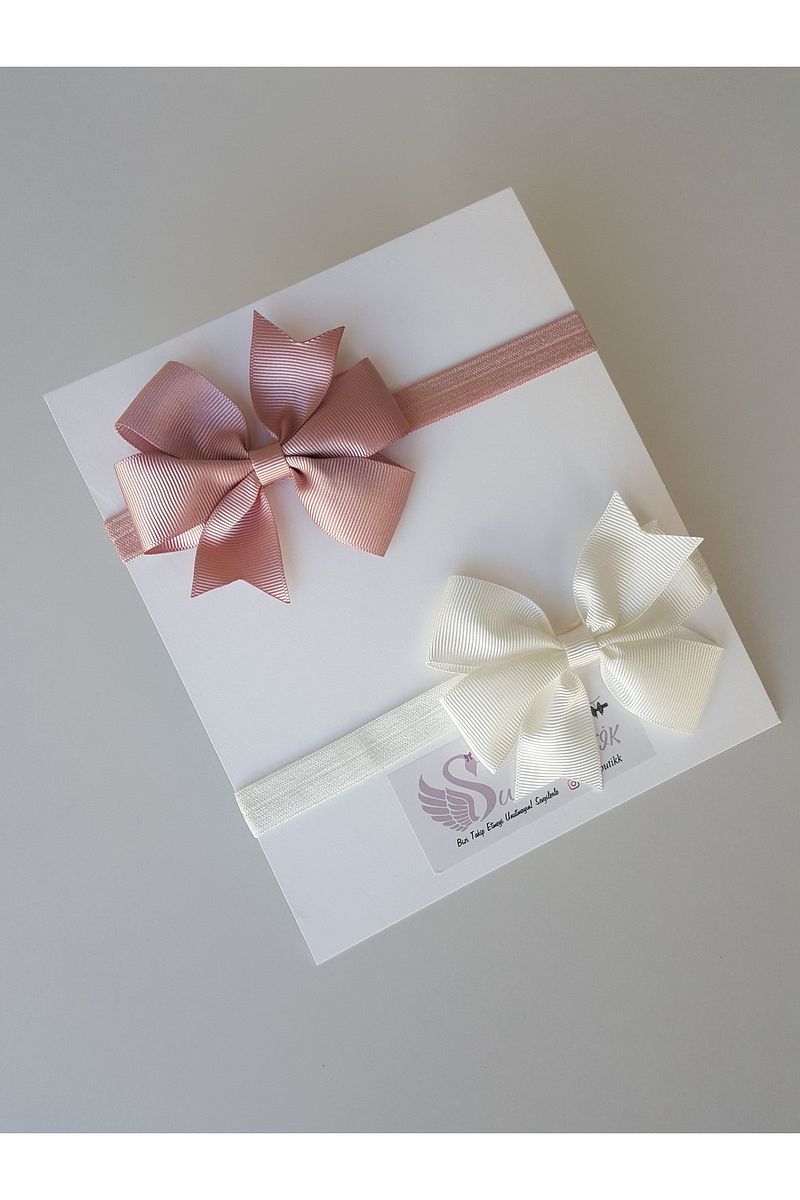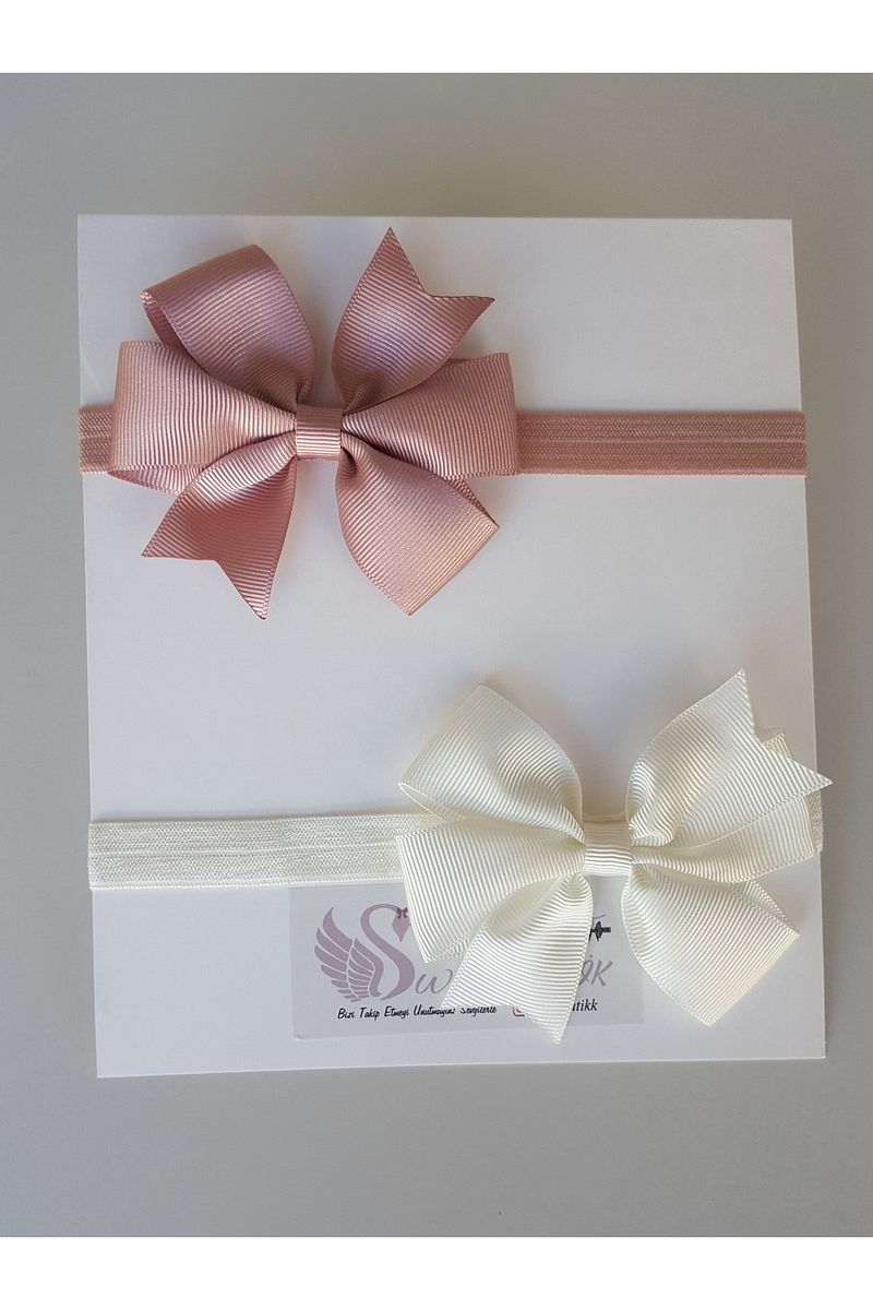 Swan Boutique Baby Girl Headband and Clip Set in Blush and Off-White