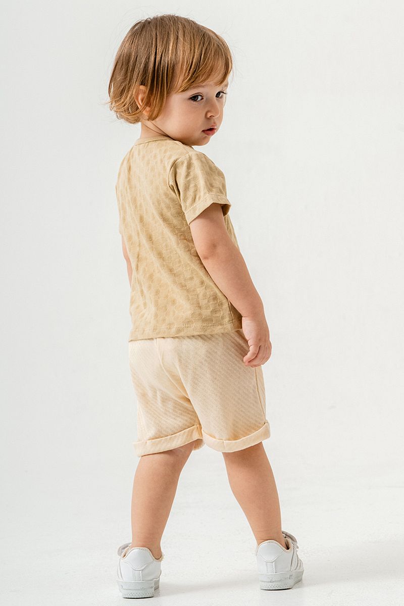 Trendy Cream Cotton Two-Piece Set with Shorts for Babies and Kids