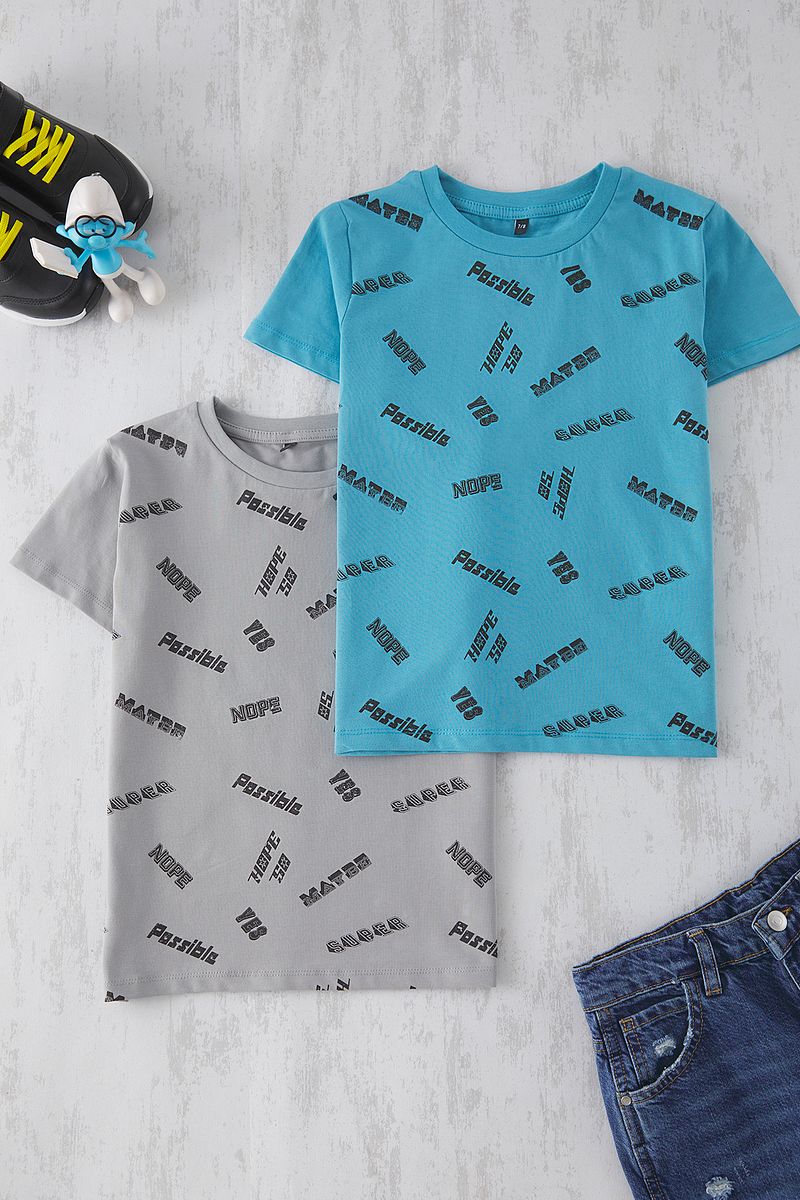 Trendyolmilla Kids Gray-Blue 2-Pack Cotton Printed Short Sleeve T-Shirts for Boys