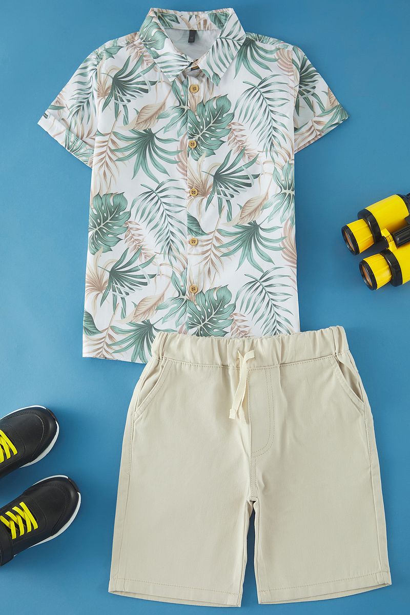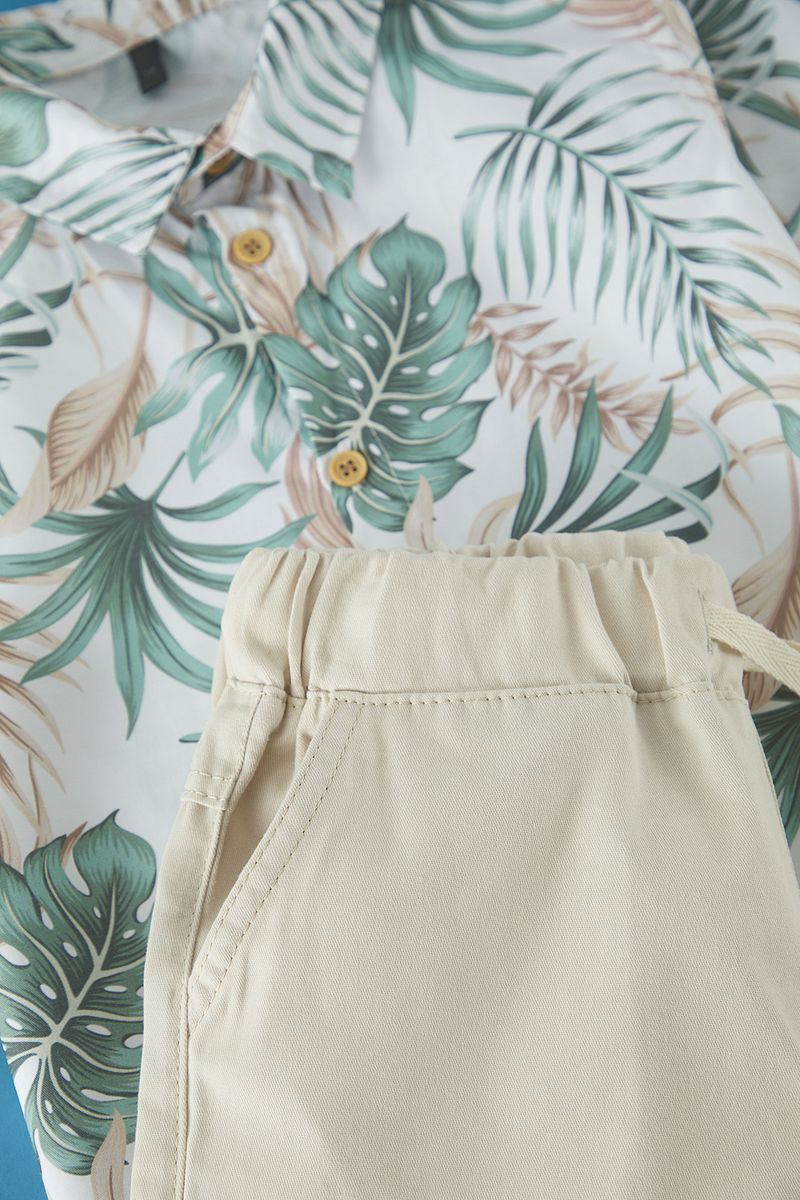 Dress your little one in style with this trendy green cotton short set featuring a vibrant tropical print. Perfect for warm days, this outfit combines comfort and fun, allowing boys to explore and play freely while looking adorable. Ideal for casual outings or beach adventures, this complete set is a must-have for every young adventurer’s wardrobe.