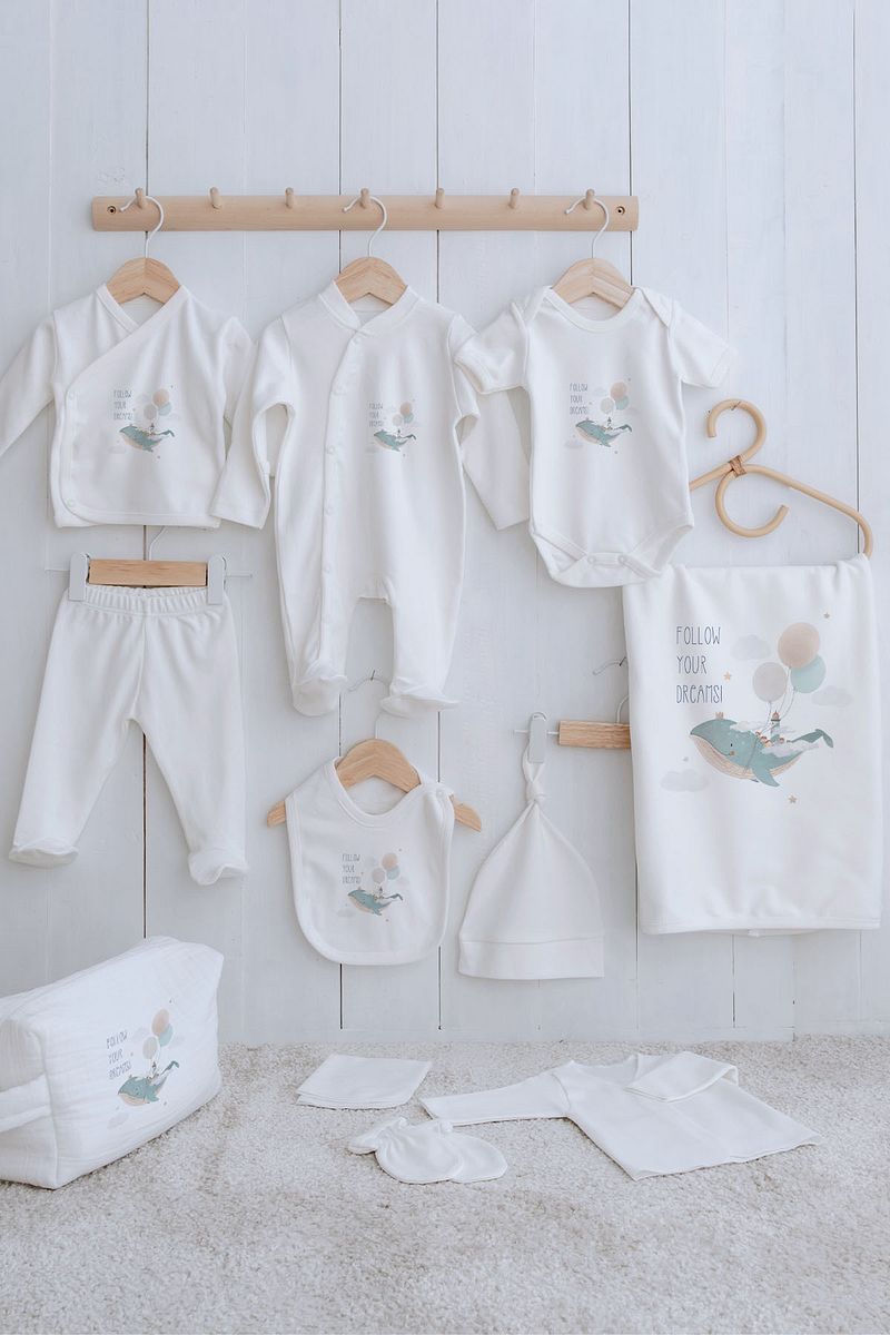 Welcome your little one into the world with the Tuğba Swan Organic 11-Piece Hospital Set in the soothing Blue Dream color. Made from soft, organic materials, this set ensures your baby is wrapped in comfort and care right from their first moments. Featuring essential items that cater to all your newborn’s needs, this stylish and practical ensemble is perfect for bringing home your bundle of joy in style. Embrace the journey of parenthood with this delightful collection that combines functionality and adorable design.