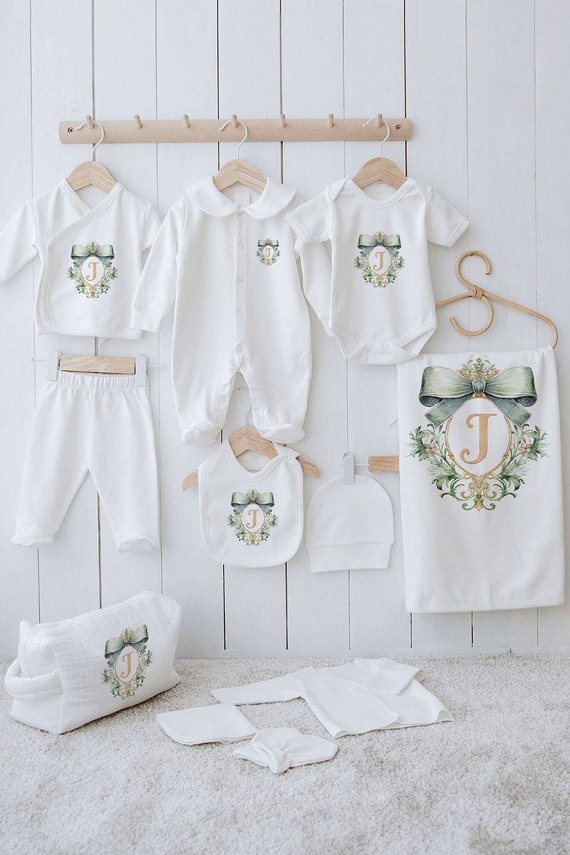 Introducing the Tuğba Swan Organic 11-Piece Hospital Set from the enchanting Green Royal Series, designed especially for your little one. This beautifully crafted set includes everything you need to ensure your baby is comfortable and stylish right from the start. Made with soft, organic materials, it is gentle on delicate skin and perfect for those precious first moments. The charming design featuring the letter J adds a personalized touch, making it a wonderful gift for new parents. Dress your baby in comfort and style with this adorable collection!