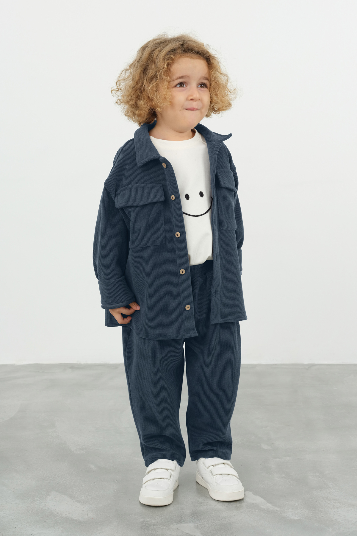 These stylish velvet pants in dark denim blue are perfect for your little one’s wardrobe. Designed with comfort in mind, they feature an elastic waistband for easy wear and two side pockets along with one back pocket for added functionality. Available in various sizes for toddlers, these versatile pants are ideal for both playdates and family outings, ensuring your child looks adorable while feeling cozy.