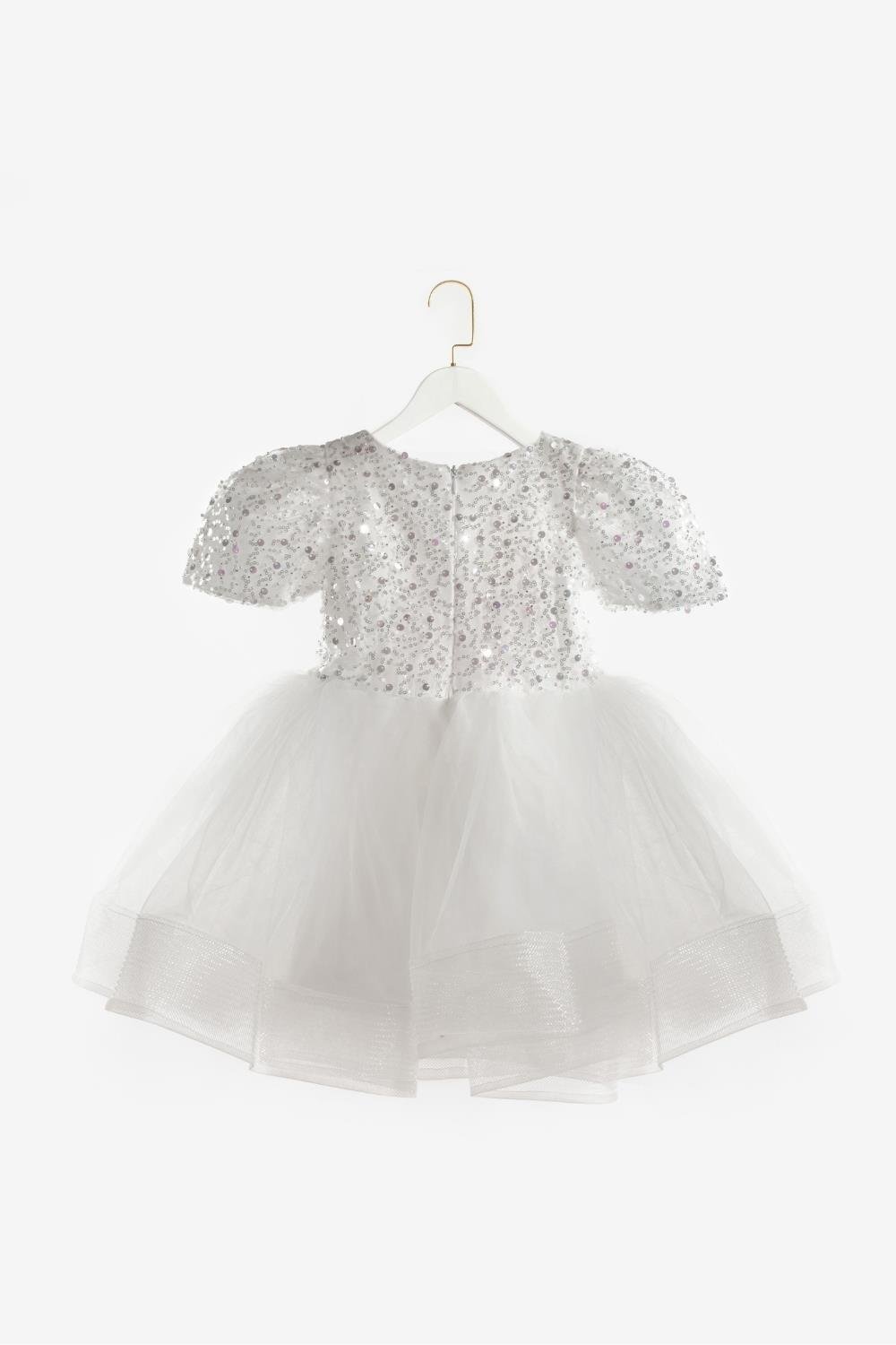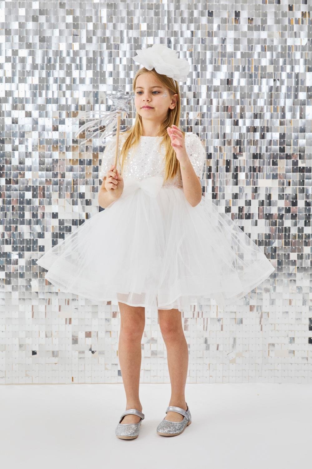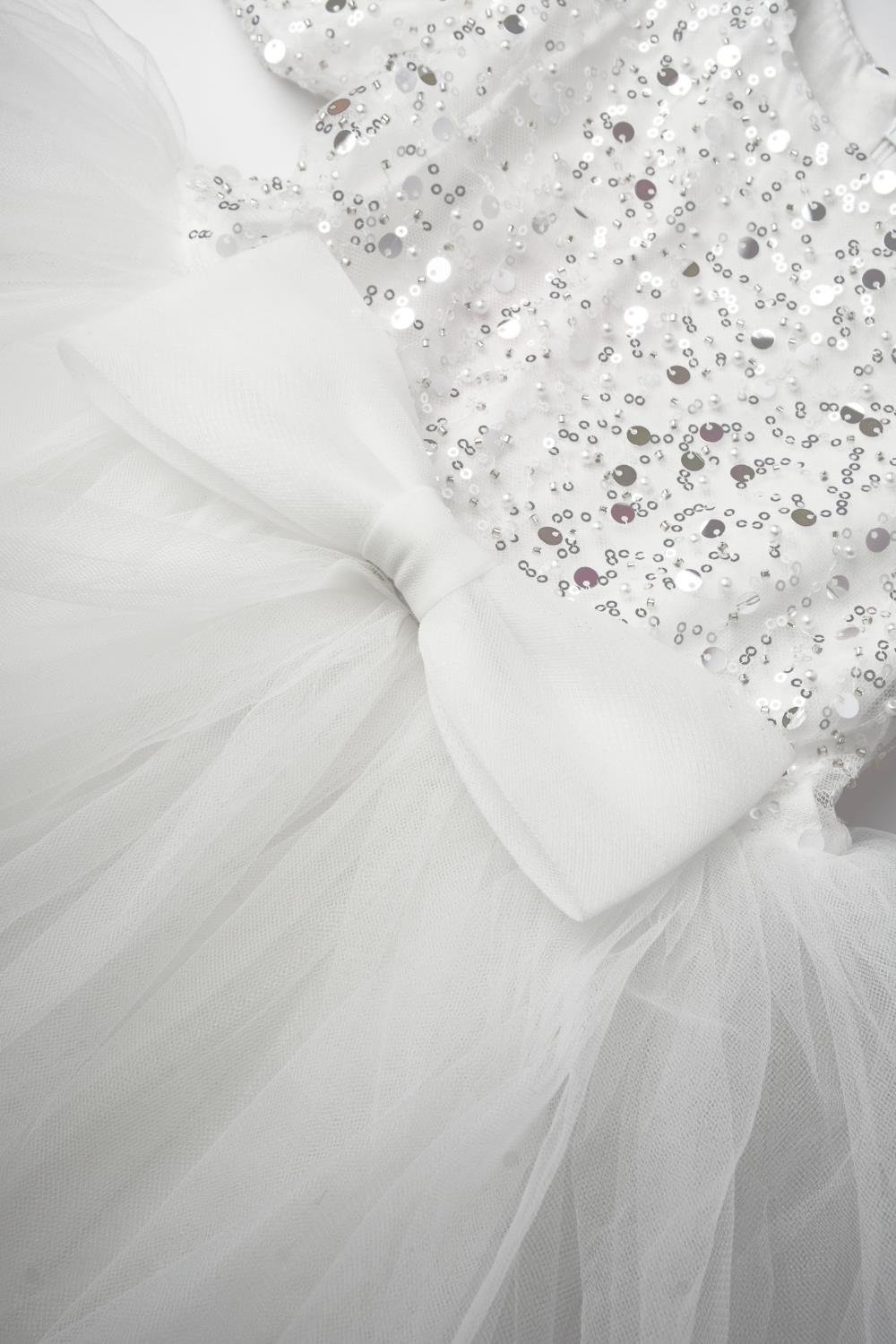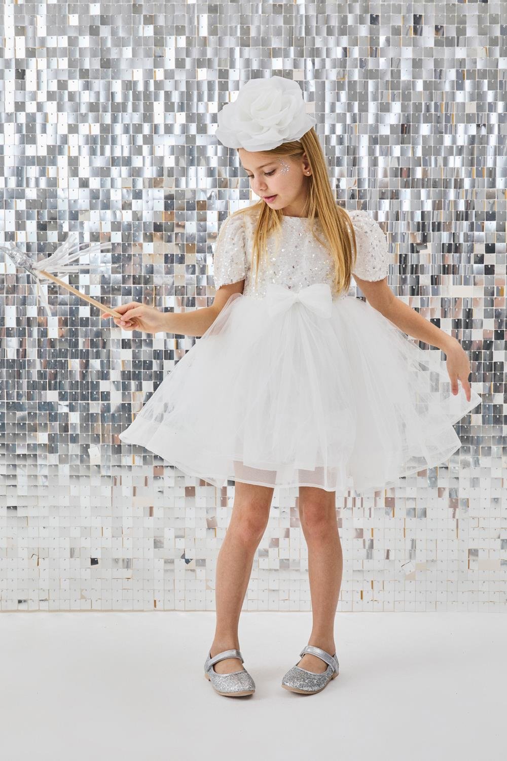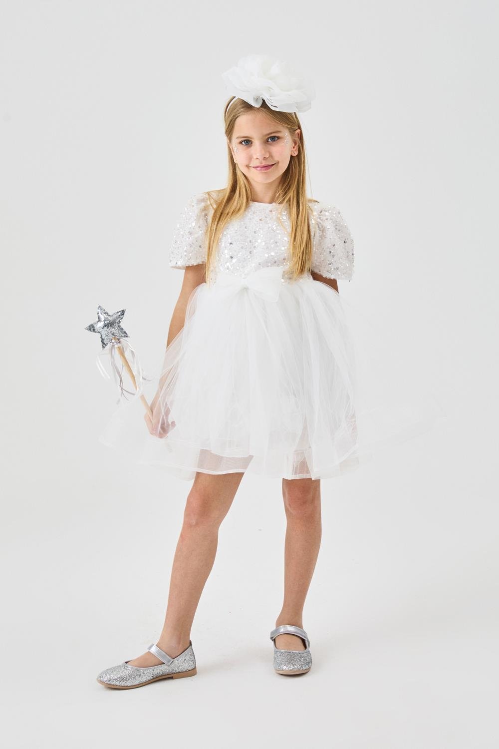فستان بناتي أبيض مزين بالترتر - جلوريا