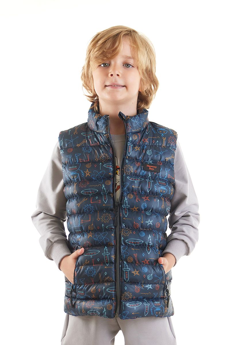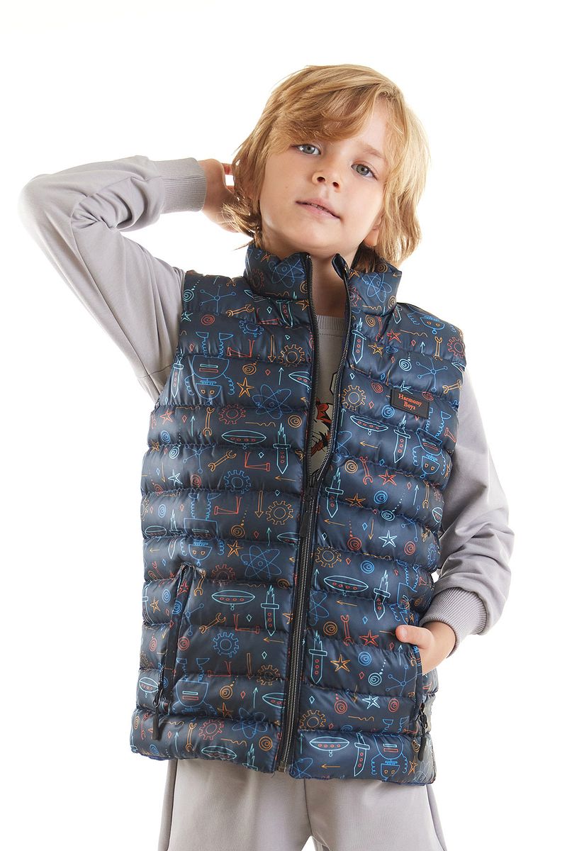 AHENGİM Kids Boys' Trendy Padded Vest with Robot Print