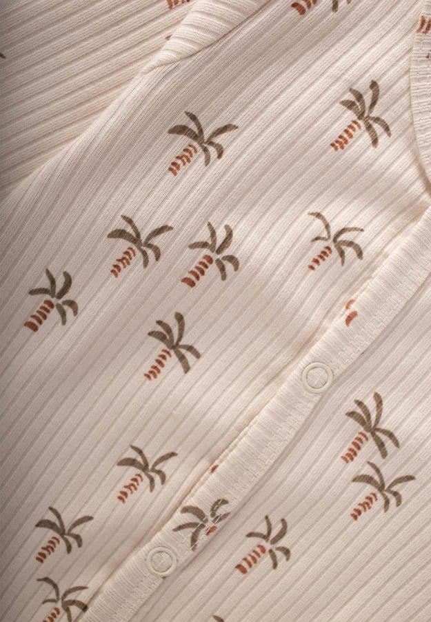 Wrap your little one in this adorable footed bodysuit featuring a charming palm pattern, perfect for ages 0-9 months. Made from a soft blend of 96% cotton and 4% elastane, it offers breathable comfort and a gentle touch against your baby’s skin. With its seasonal thickness, this bodysuit is ideal for cozy outings or playtime at home. Easy to care for, simply machine wash on a short program at a maximum of 30ºC to keep it looking fresh and vibrant.