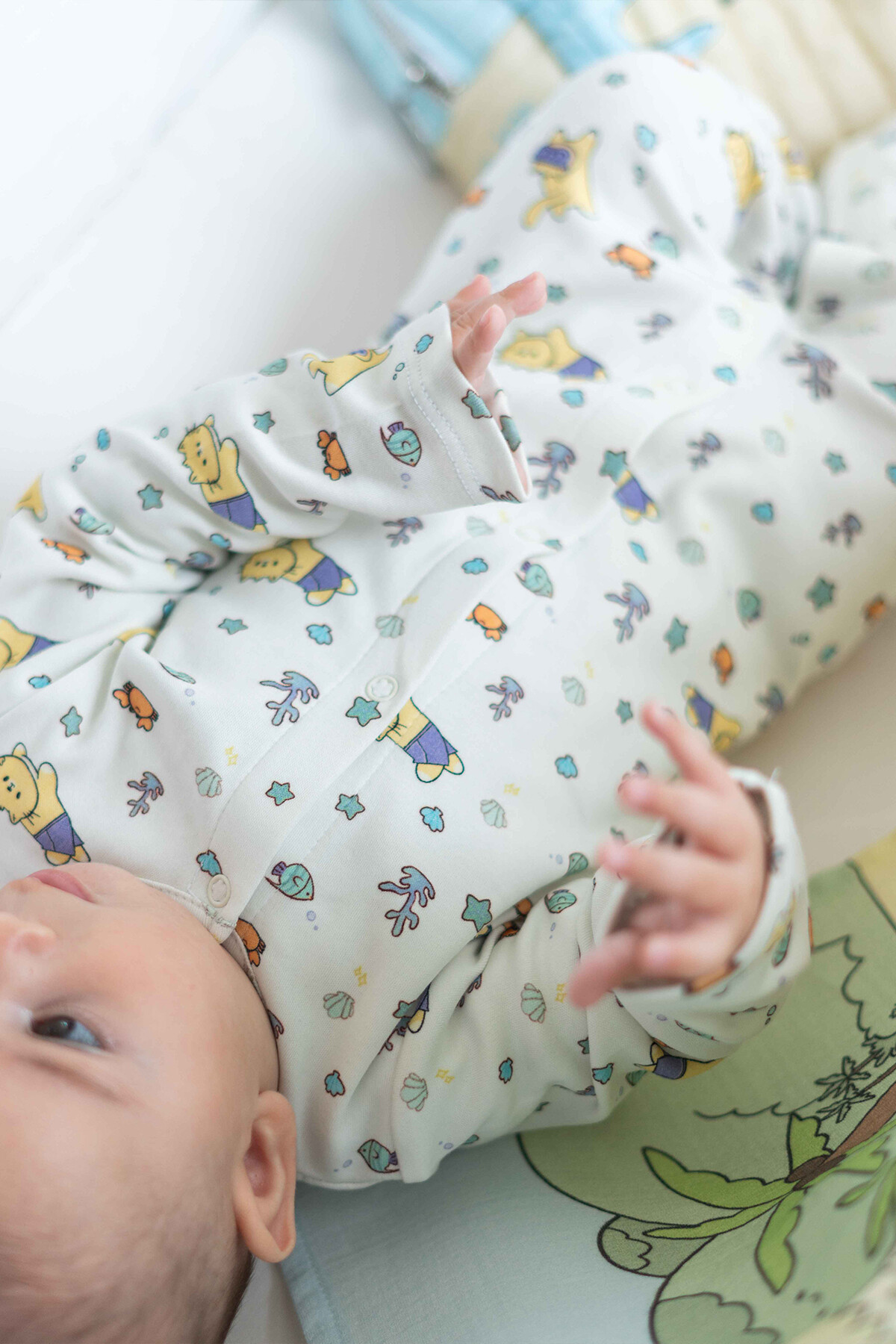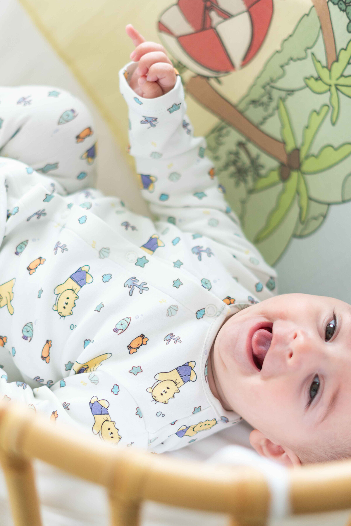 Introducing our uniquely designed beach-themed baby romper, crafted with love by Atelier Babbi for your most treasured little ones. Made from 100% premium cotton, this romper features a breathable fabric that is gentle on sensitive skin, making it perfect for everyday wear. With GOTS certified inks used for printing, you can trust that your baby is safe and comfortable. Available in sizes for newborns up to 9 months, this adorable outfit ensures your baby stays stylish and cozy during those sunny outings. Easy to care for, simply wash inside out at 30 degrees to maintain its vibrant colors and patterns. Dress your baby in comfort and style with our beautiful beach romper!