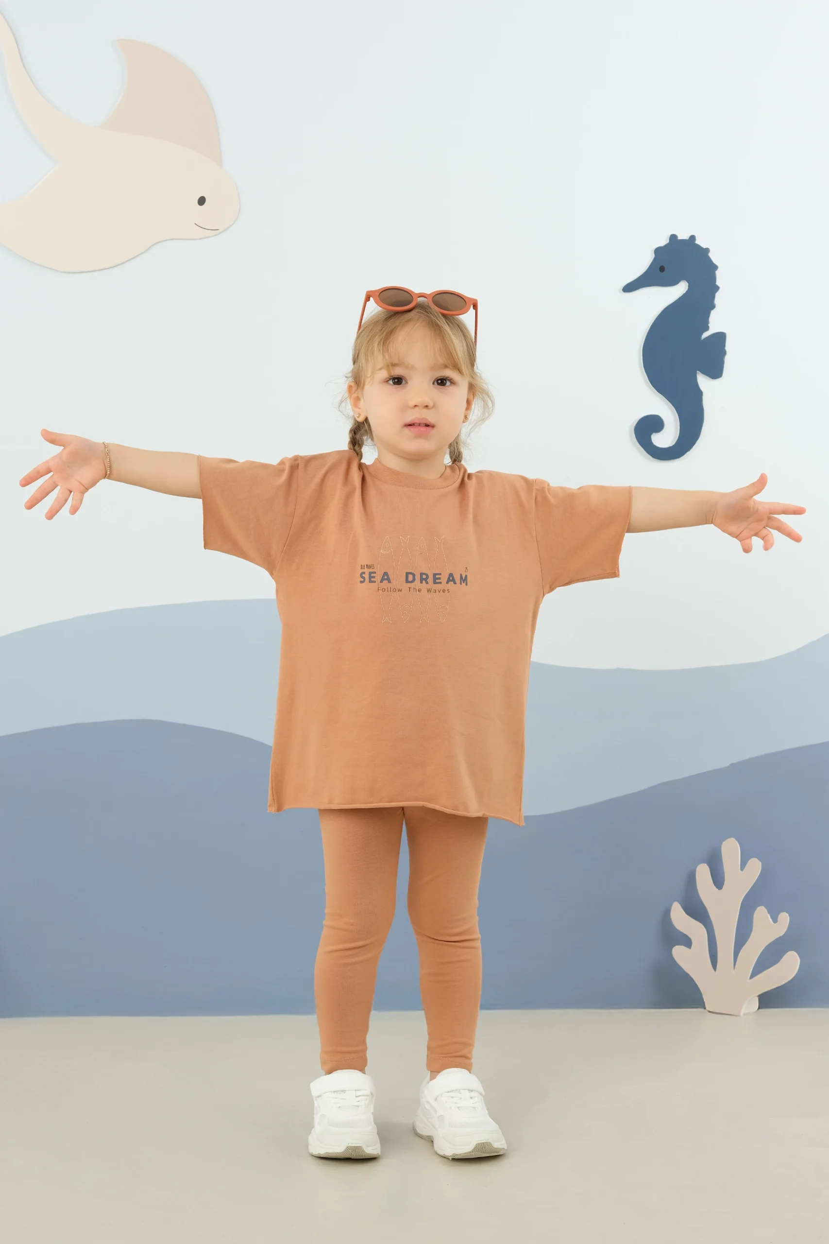 This adorable basic leggings set in a delightful salmon color is crafted from 95% cotton, ensuring both comfort and breathability for your little one. The short-sleeved T-shirt features a stylish round neck and charming print details, while the leggings boast an elastic waistband for a perfect fit. Designed for everyday wear, this outfit is ideal for playdates or casual outings. To keep it looking fresh, we recommend washing it gently at 30 degrees and avoiding tumble drying.
