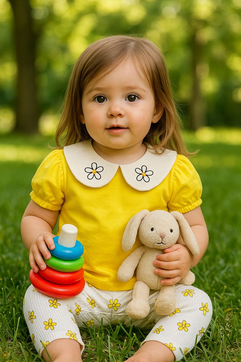 Dress your little one in this adorable floral collar yellow two-piece set from Baume Clothes, crafted from 100% organic cotton for ultimate comfort and style. Perfect for playdates or special occasions, this outfit combines a cheerful color with charming details, ensuring your baby girl stands out while feeling cozy all day long.