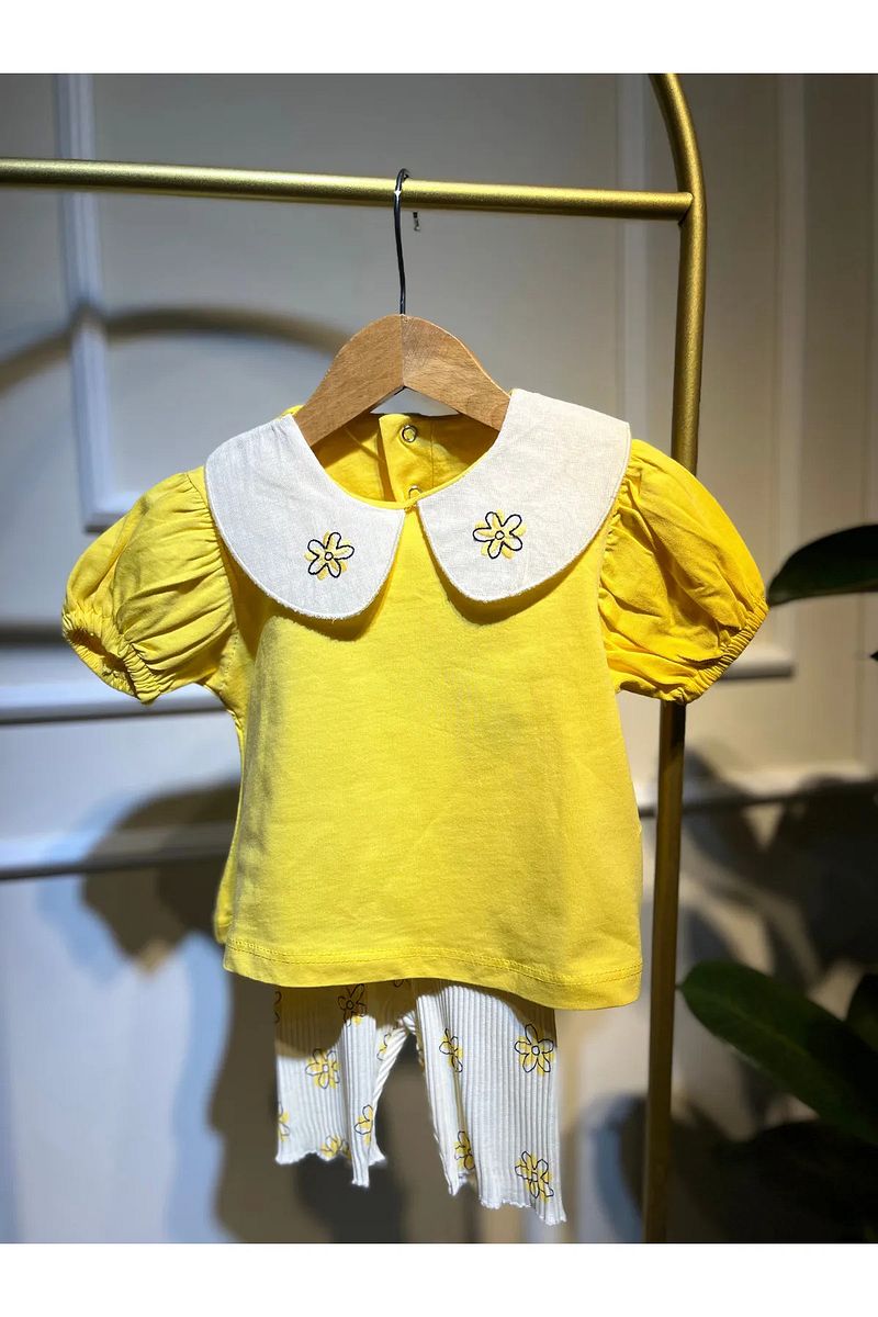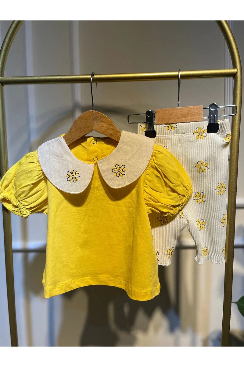 Baume Clothes Floral Collar Yellow Two-Piece Set for Baby Girls