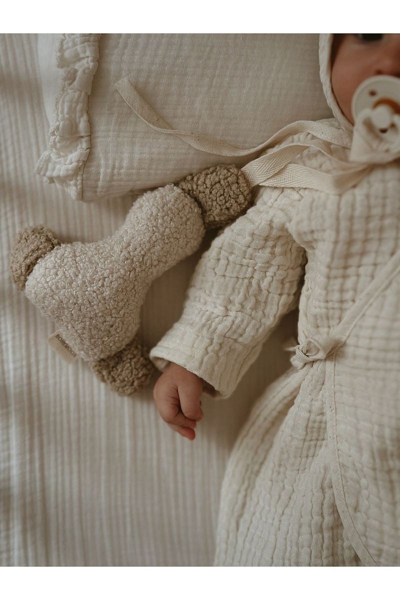 The Bohemoon Teddy Duck Pacifier Clip in a delightful beige and cream color is the perfect accessory for your little one’s outfits. Designed with both style and functionality in mind, this charming clip keeps pacifiers secure and within reach while adding a touch of whimsical fun. Made from safe, high-quality materials, it ensures comfort for your baby and peace of mind for parents. Ideal for everyday use or special occasions, this adorable pacifier clip is a must-have for your child’s wardrobe.