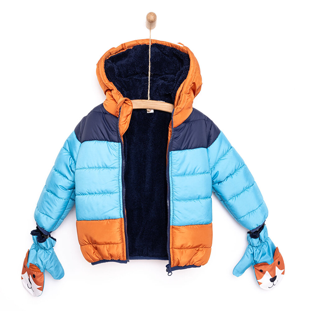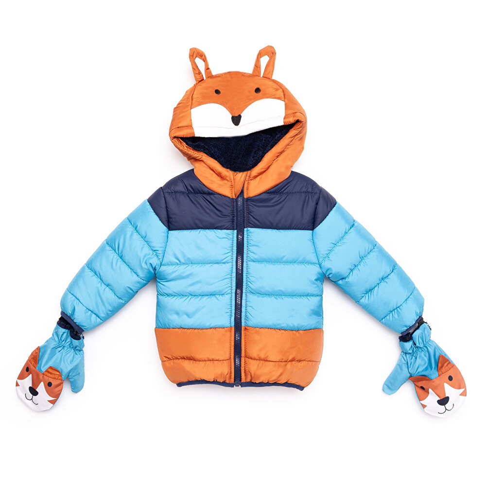Boys’ Basic Fox Patterned Jacket with Gloves in Blue