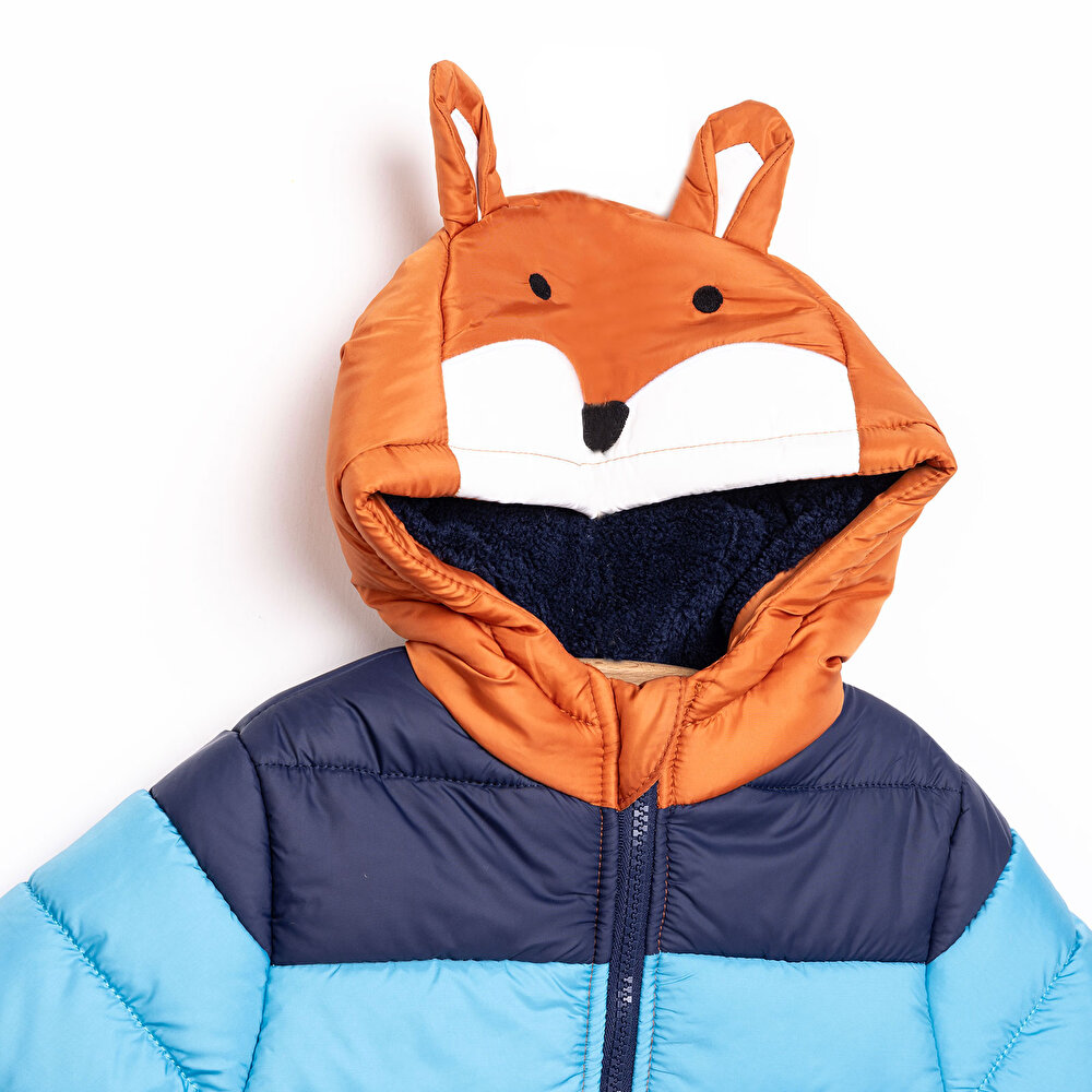 Boys' Basic Fox Patterned Jacket with Gloves in Blue