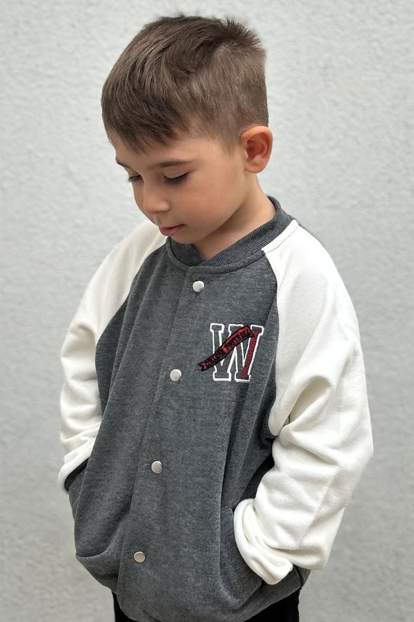 Boys’ College Jacket with Letter Embroidery in Grey Melange (3-6 Years)