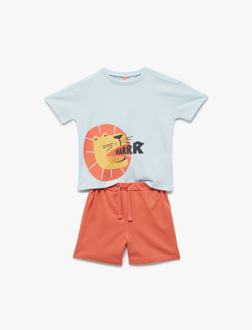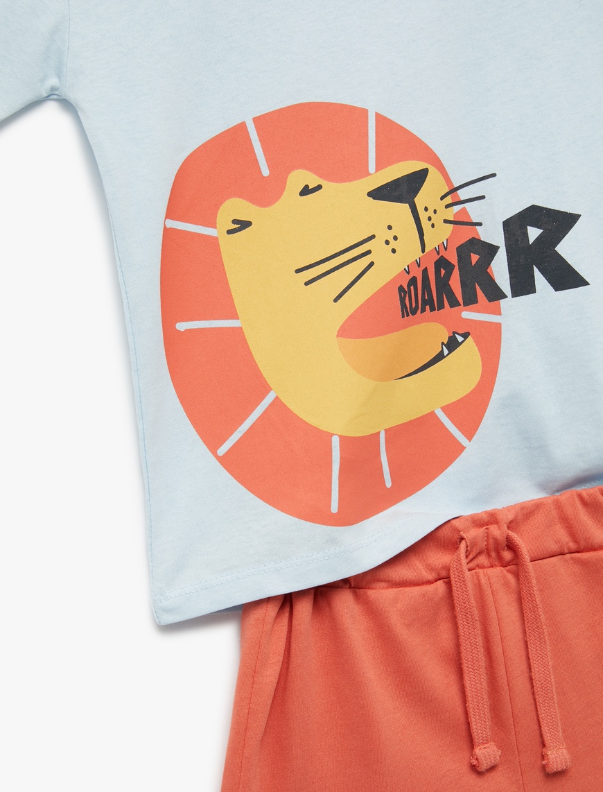 Boys’ Cotton Graphic Lion Print T-Shirt and Shorts Set