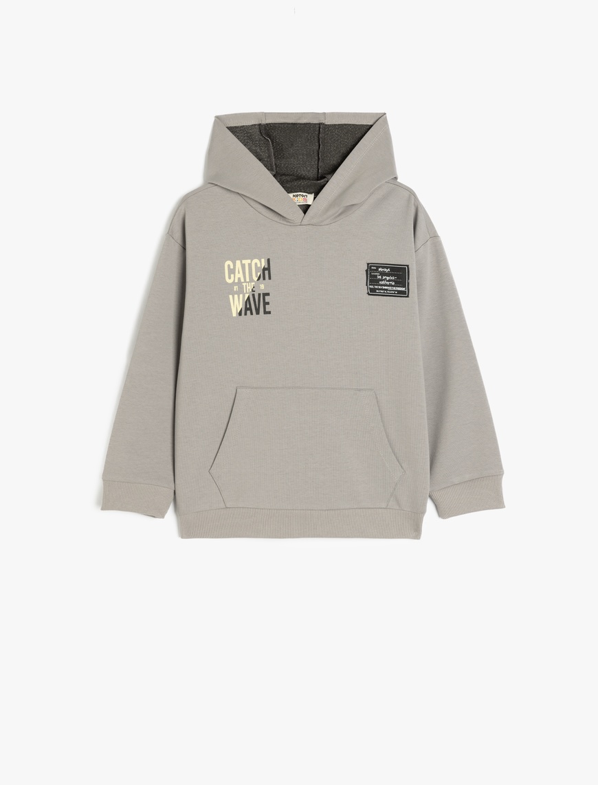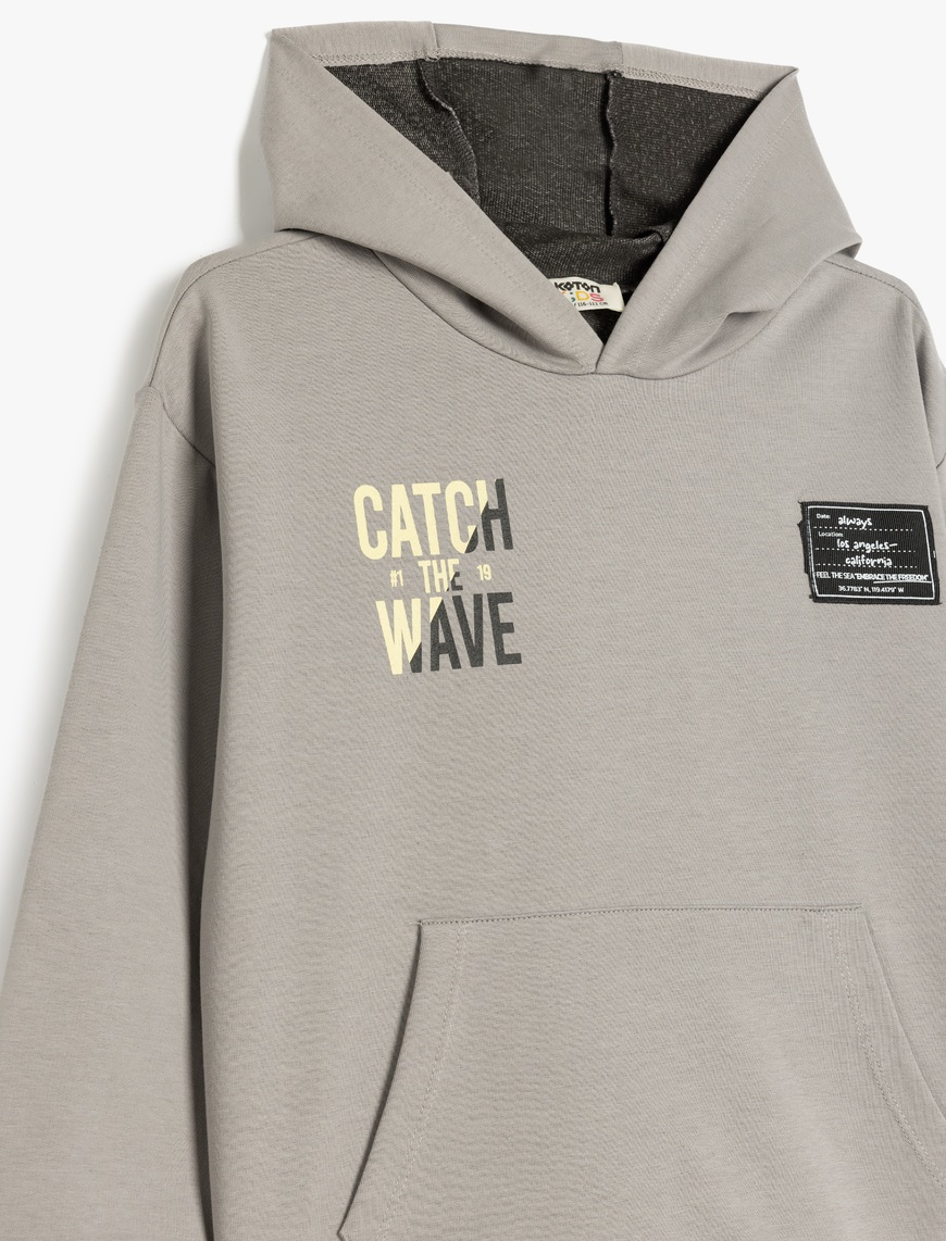 Boys' Cotton Hooded Long Sleeve Oversized Sweatshirt with Slogan Print