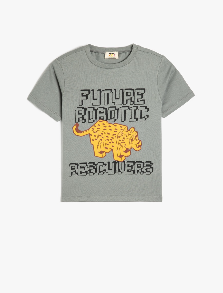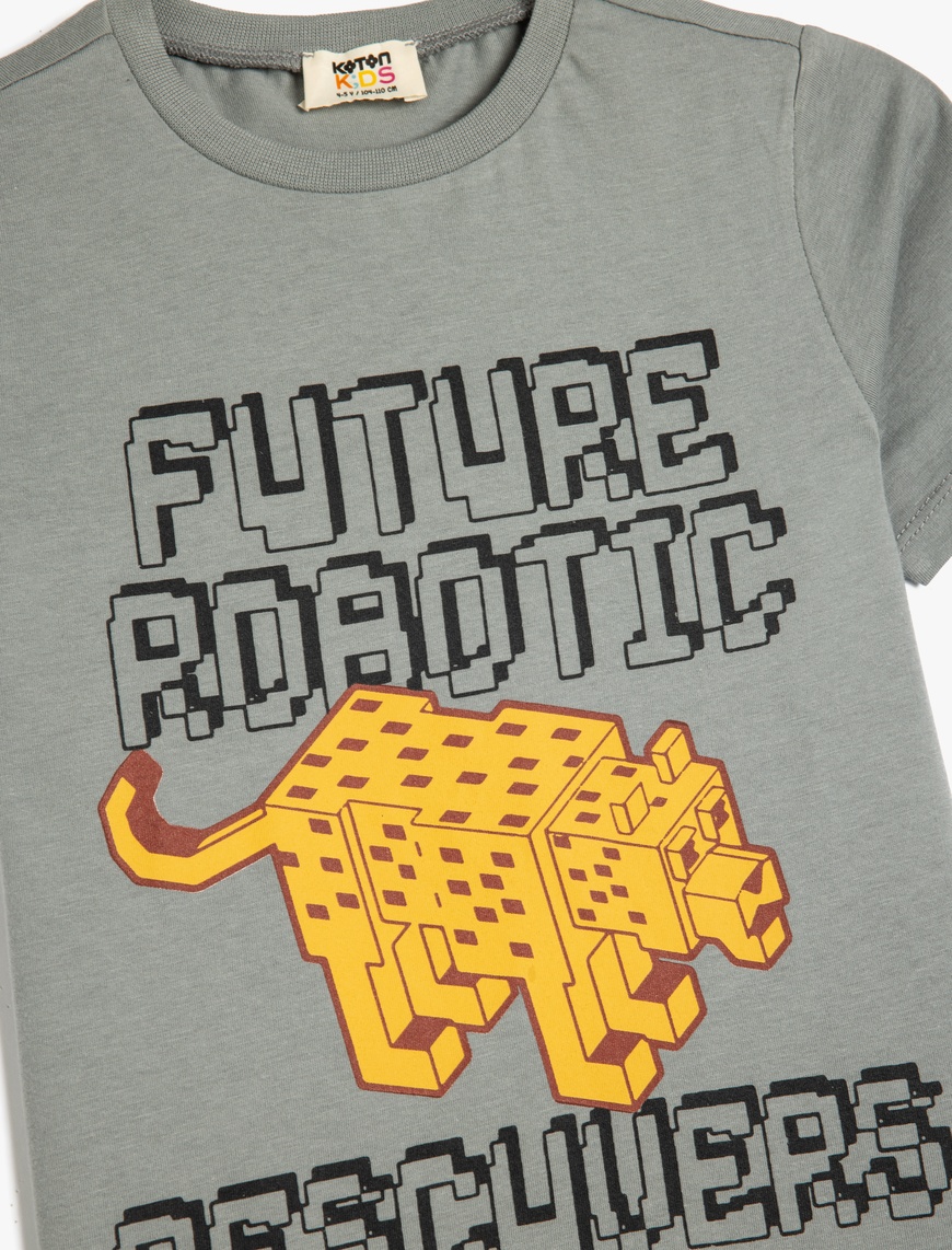 Boys’ Cotton Short Sleeve T-Shirt with Slogan Print