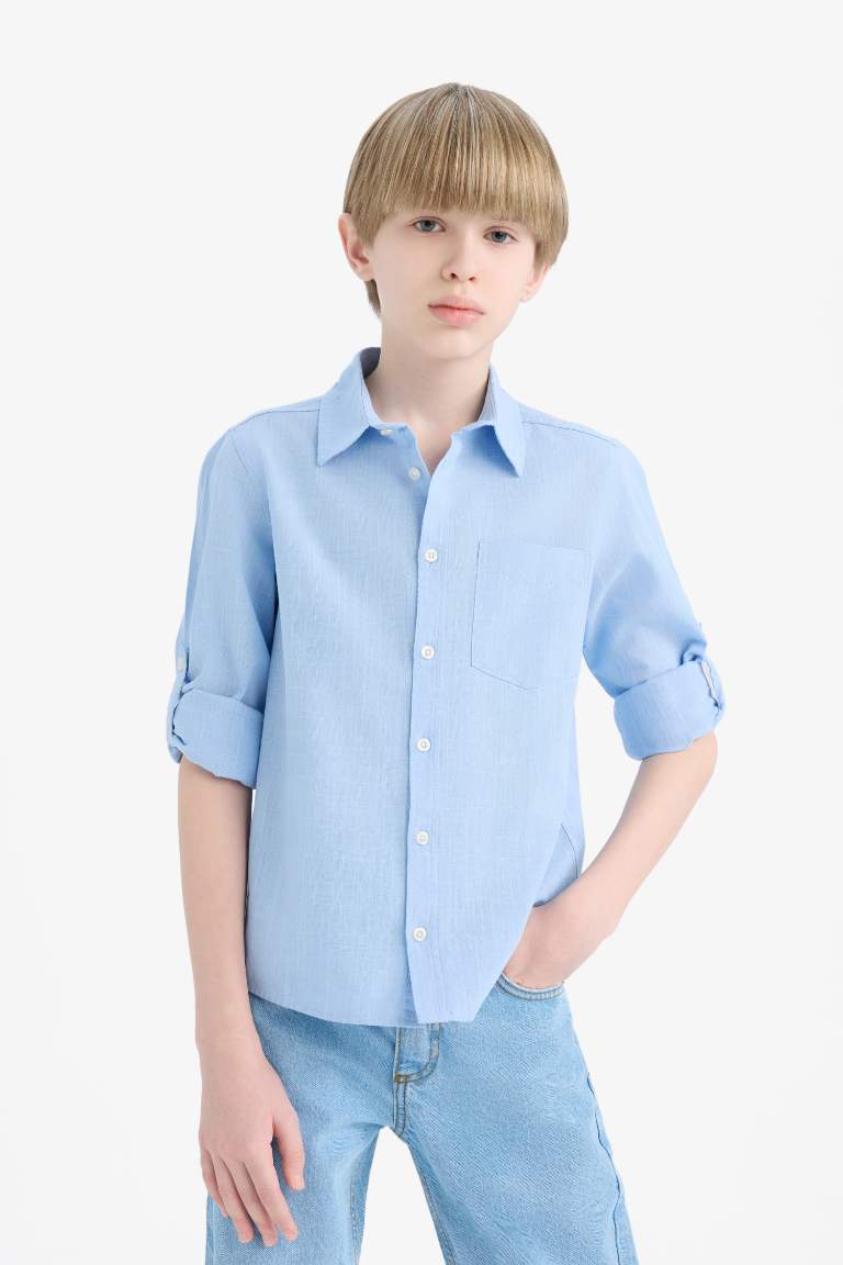 Boys’ Long Sleeve Polo Neck Linen Look Shirt