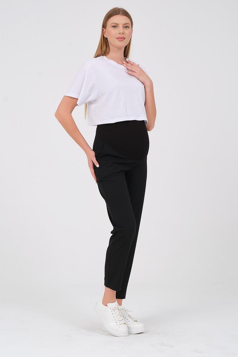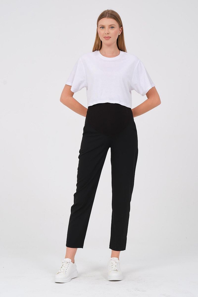 BUSA Maternity Stretch Belly Band Adjustable Waist Mom Fit Classic Gabardine Pants Black