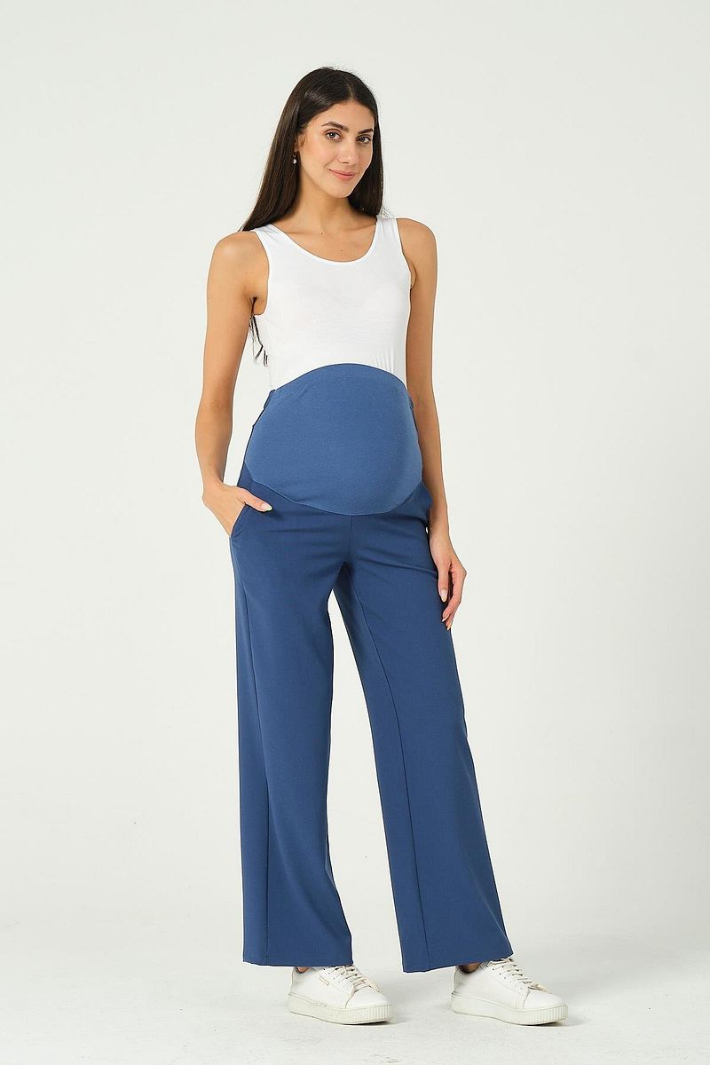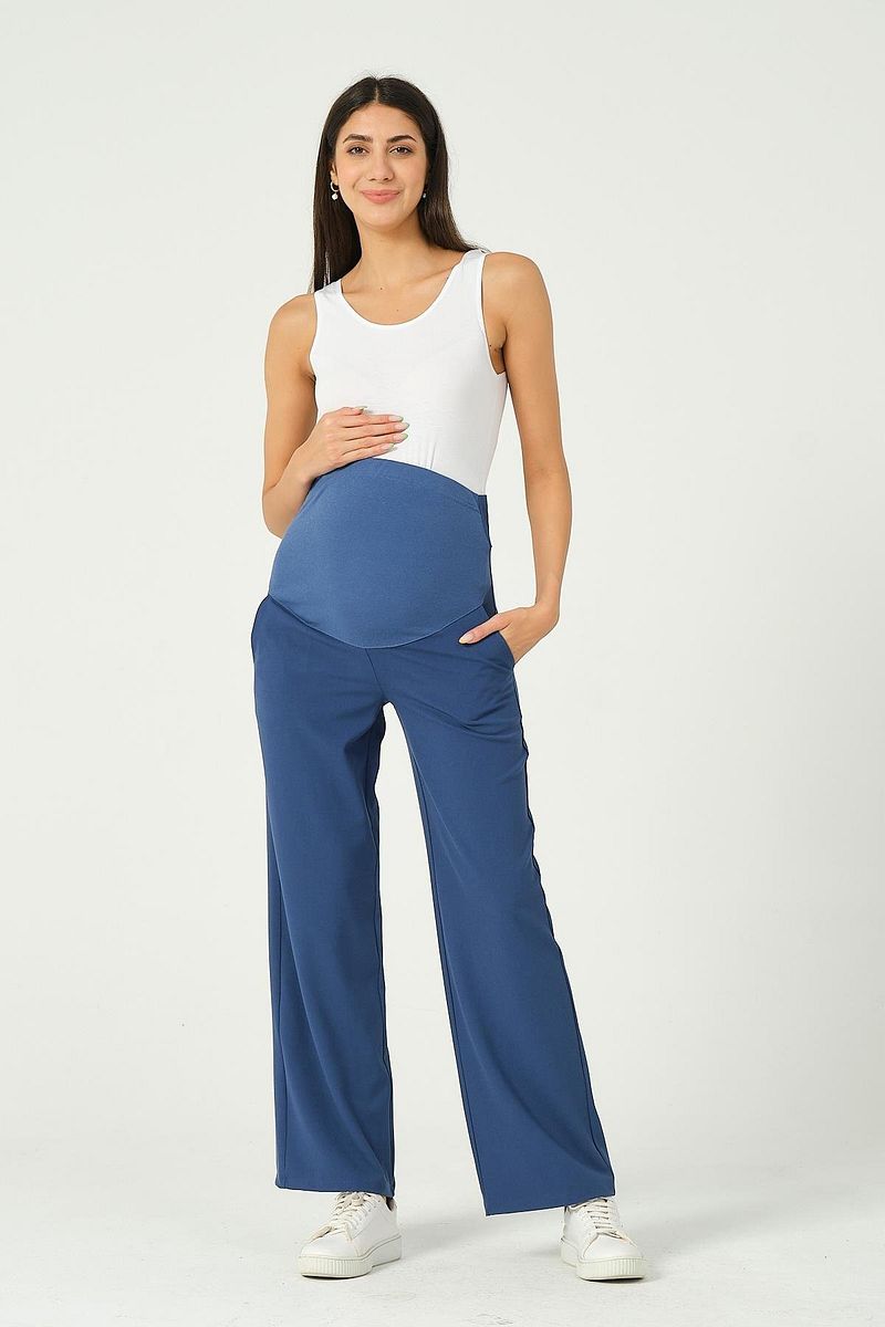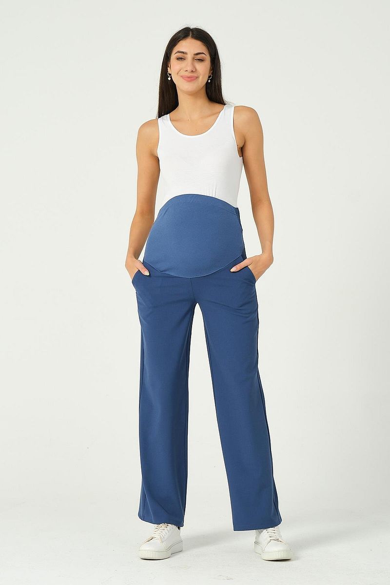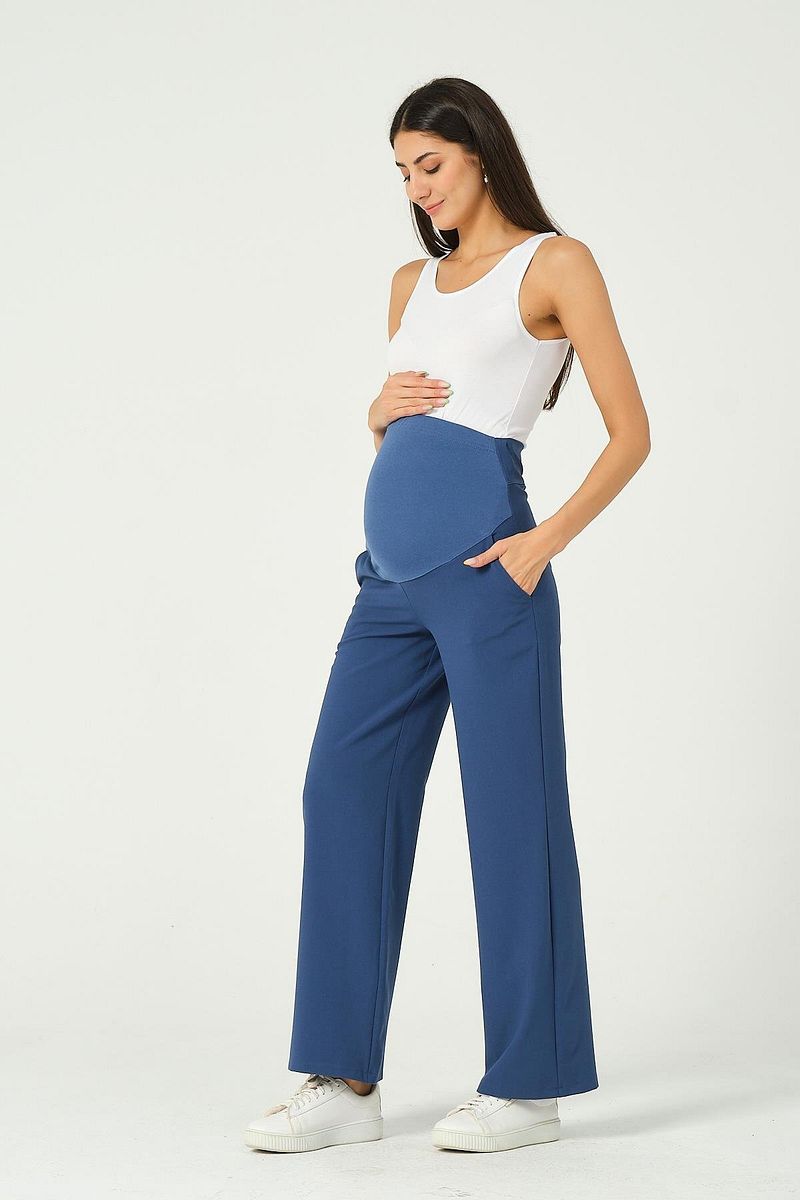 BUSA Maternity Stretch Waistband Adjustable Wide Leg Gabardine Pants Blue