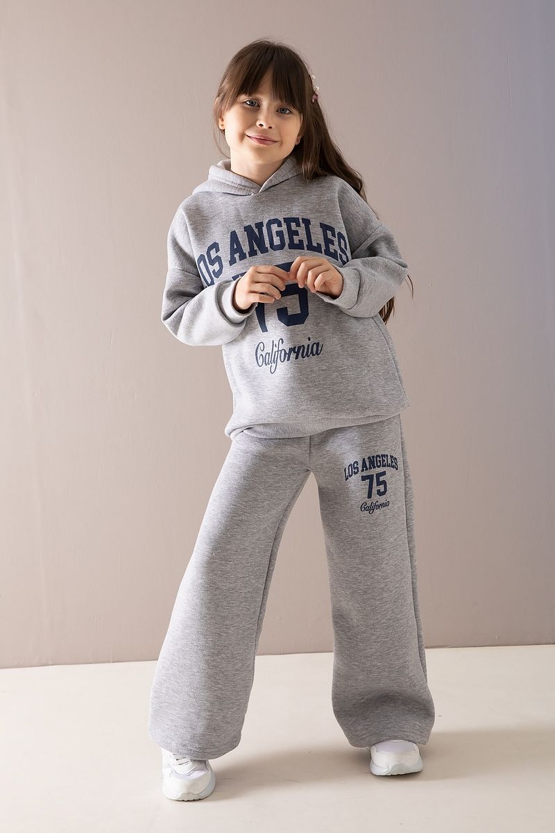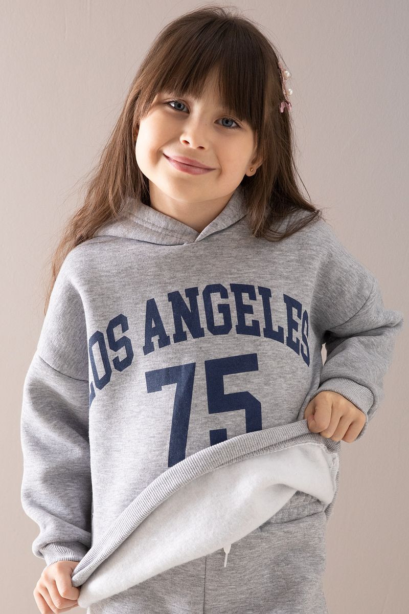 Cansın Mini Gray California Print Hooded Sweatshirt Set for Girls