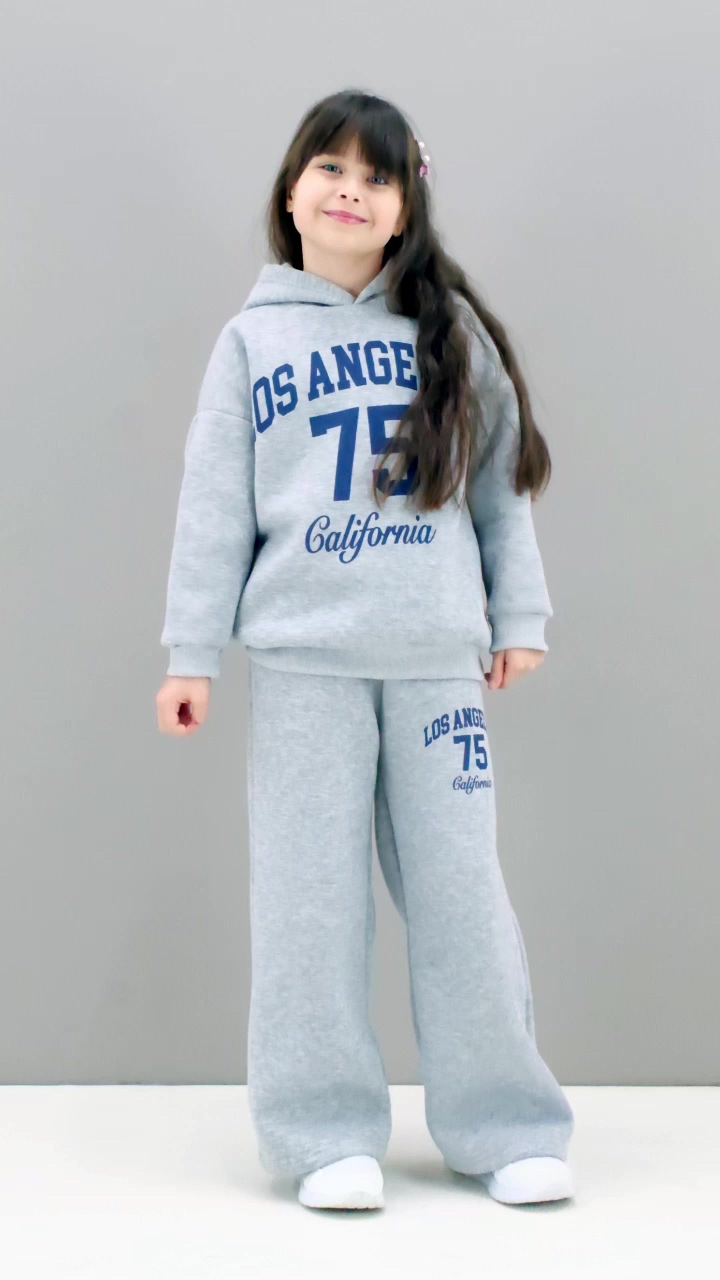 Be the first to review “Cansın Mini Gray California Print Hooded Sweatshirt Set for Girls”