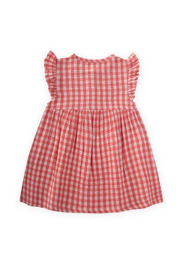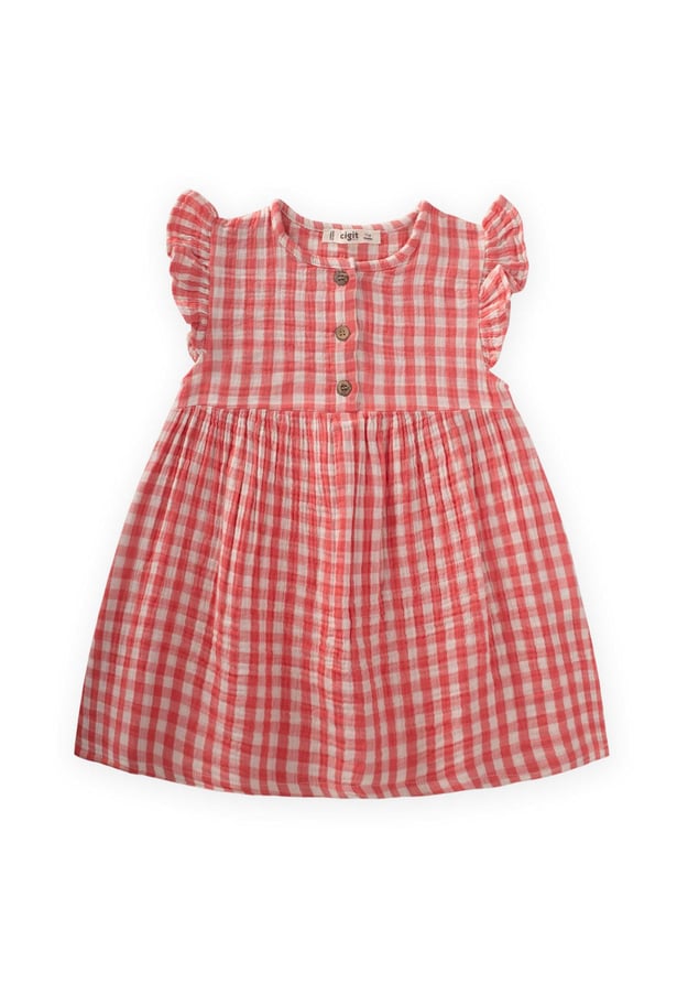 This charming coral checkered dress is crafted from 100% pure natural cotton, making it perfect for warm summer days. Its breathable and soft texture ensures your little one stays comfortable while looking adorable. Easy to care for, this dress is machine washable on a short program up to 30ºC, allowing for hassle-free cleaning. Dress your child in style with this delightful piece that combines fun and functionality!