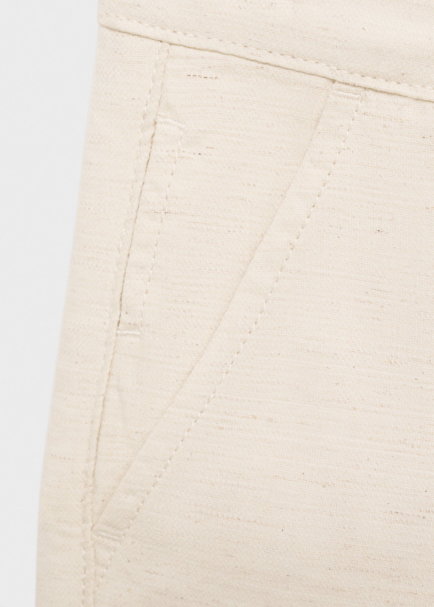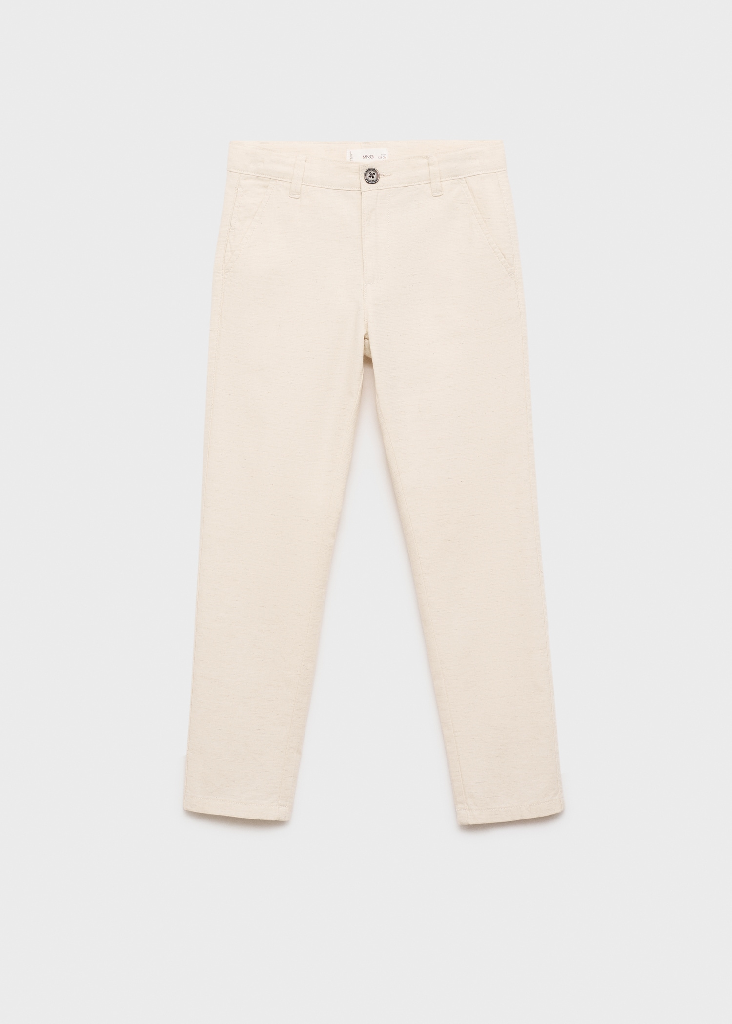 These stylish cotton-linen blend pants are perfect for your little one’s adventures. Featuring a trendy skinny fit, they come with two front pockets and two back pockets for added practicality. The belt loops add a finishing touch, while the zip and button closure ensure a secure fit. Ideal for casual outings or playdates, these pants combine comfort with style, making them a must-have in every child’s wardrobe.