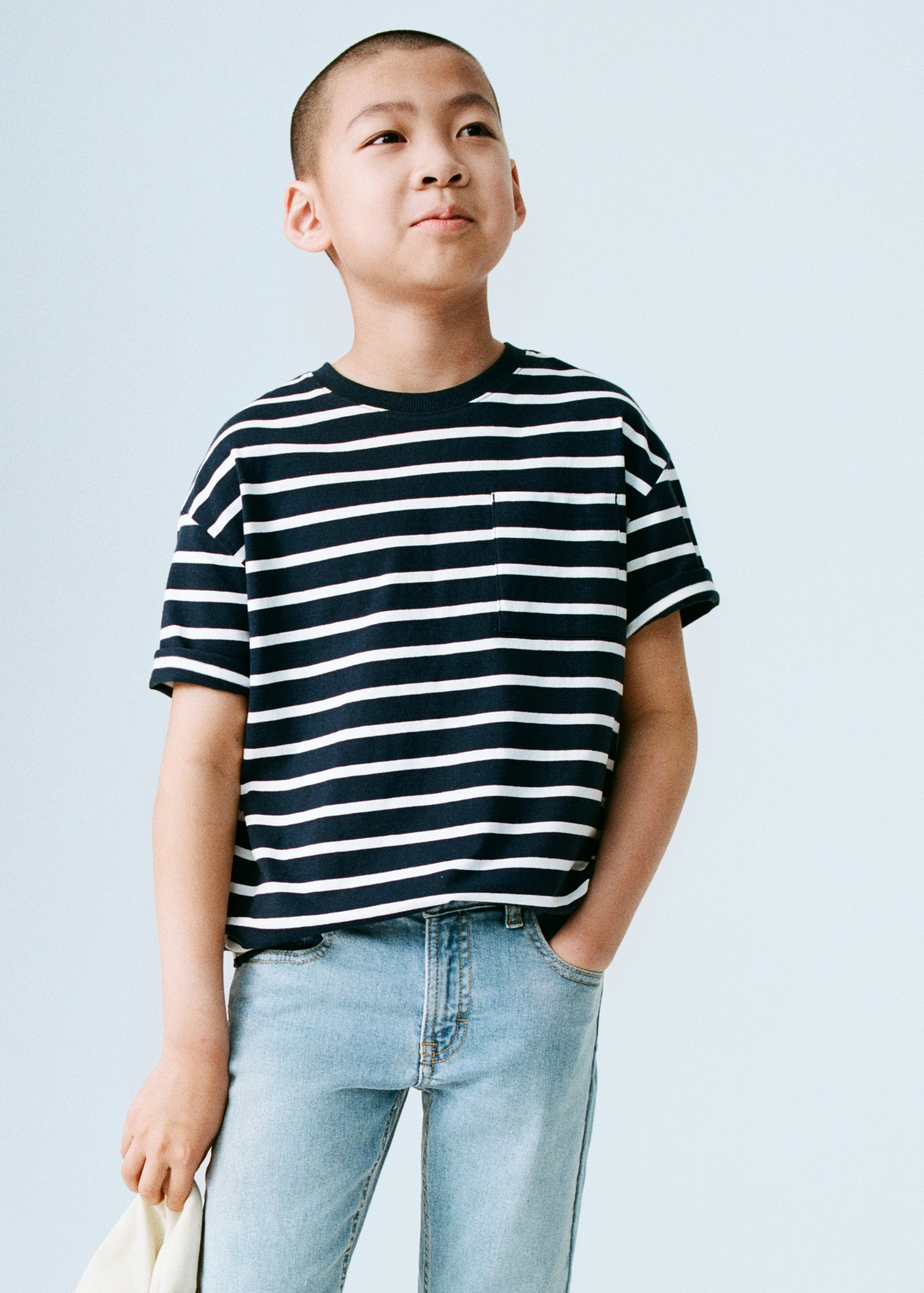 This adorable cotton striped t-shirt is perfect for your little one’s wardrobe. Featuring a stylish striped design, it includes a ribbed pocket on the chest and a contrasting collar for a fun touch. With a comfortable round neckline and short sleeves, this t-shirt is ideal for everyday play and adventures. Dress your child in this charming piece for a look that’s both playful and trendy!