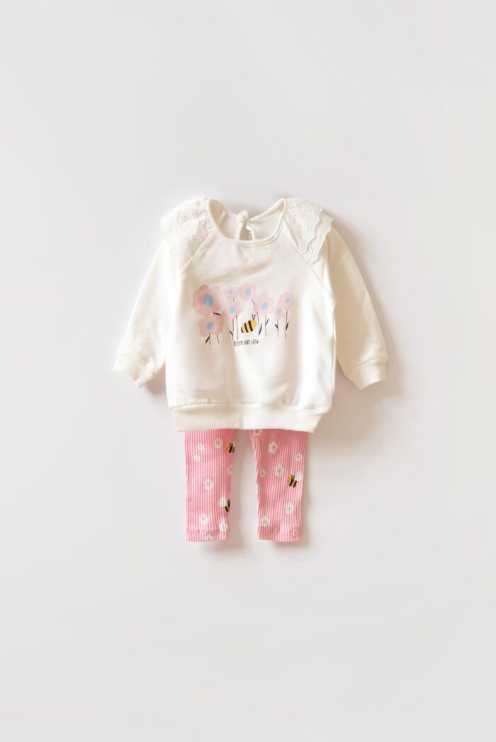 Dress your little one in this adorable floral ruffled legging set, crafted from 100% cotton for ultimate comfort and softness. Designed specifically for babies, this outfit features a gentle fit that allows for easy movement, making it perfect for playtime. The fabric is free from harmful substances, ensuring safety for your child’s delicate skin. With its vibrant design and cozy material, this set is ideal for everyday wear or special occasions. Plus, it comes with hassle-free return and exchange options, making shopping a breeze!