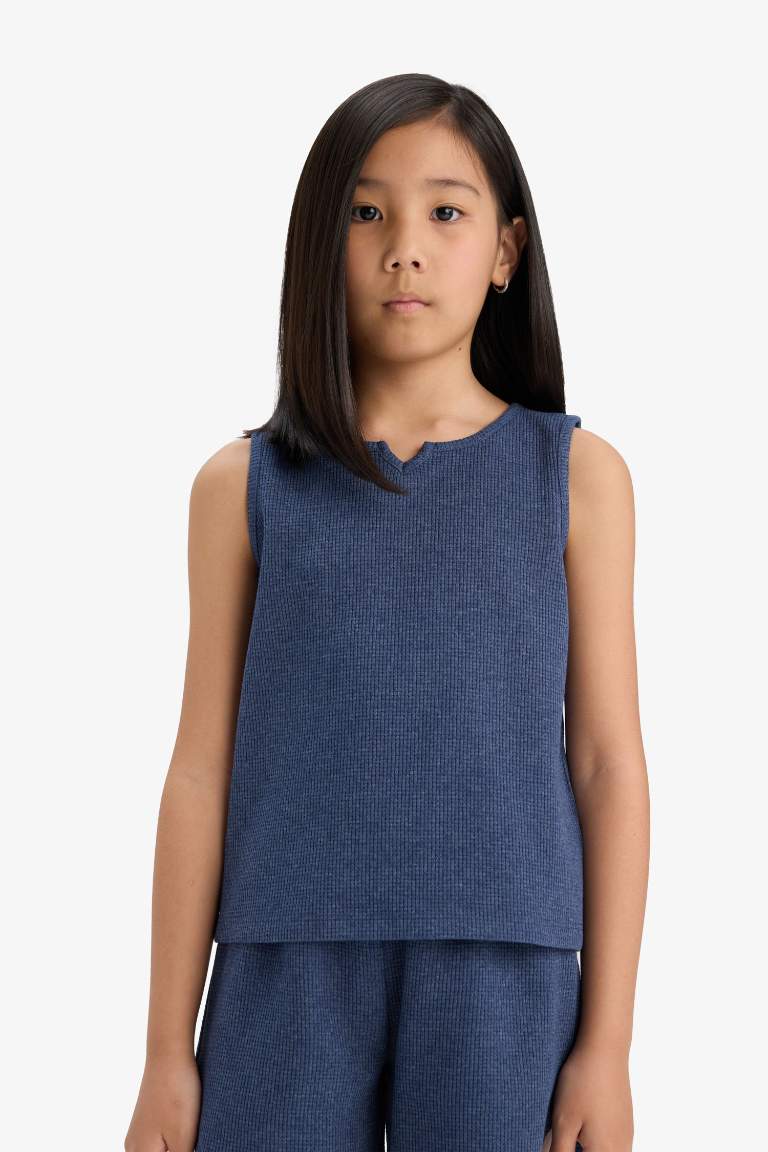 Girls’ 2-Piece Waffle Set with Sleeveless Top and Elastic Waist Shorts