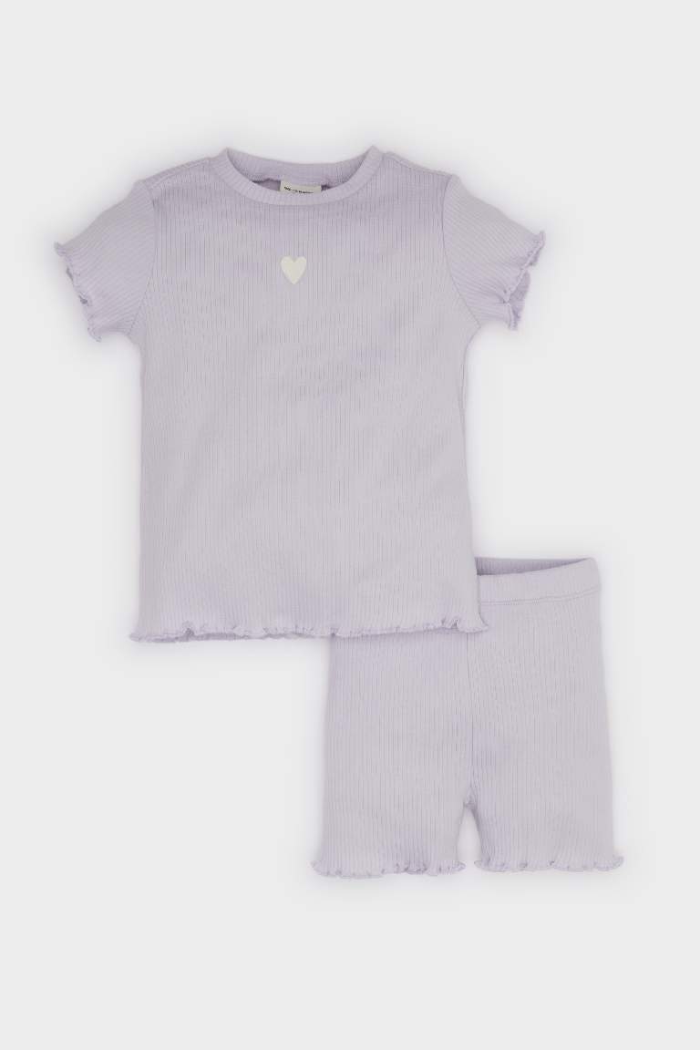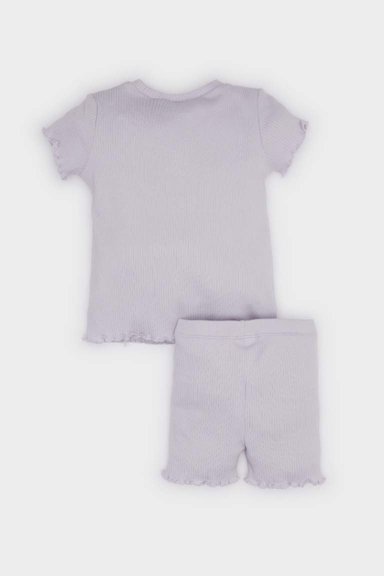 Girls' Baby 2-Piece Set Ribbed Jersey Short Sleeve T-Shirt and Elastic Waist Shorts
